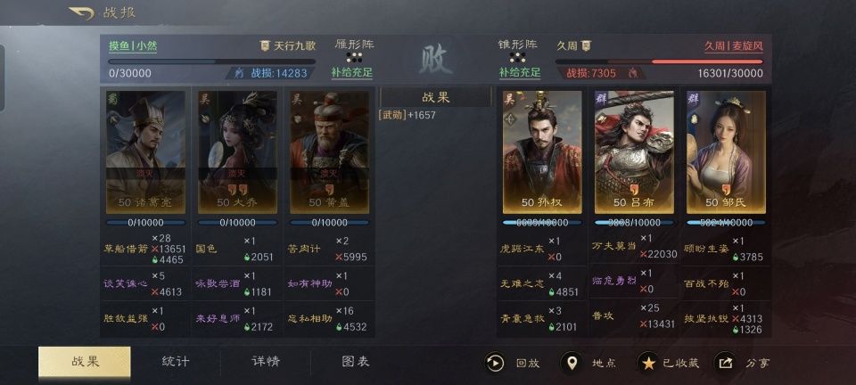 顾名思义,吕布和孙权搭班子的组合,就是所谓的布权。大多数三国谋定天下的玩家,并不会把这两个角色联系到一起,因为从他们各自的人设特点来看,委实是交集不多。本文带来的这场战报,极富创意的把这两个角色有机结合到了一起,故而非常值得一看。 在此特别鸣谢游戏ID名为“久周丨麦旋风”的玩家朋友,为本体提供了宝贵的创作素材。他麾下的布权组合,第三人拉进来了邹婶娘,面对着人气组合大黄猪,仅半场就把对方逼到了绝路。