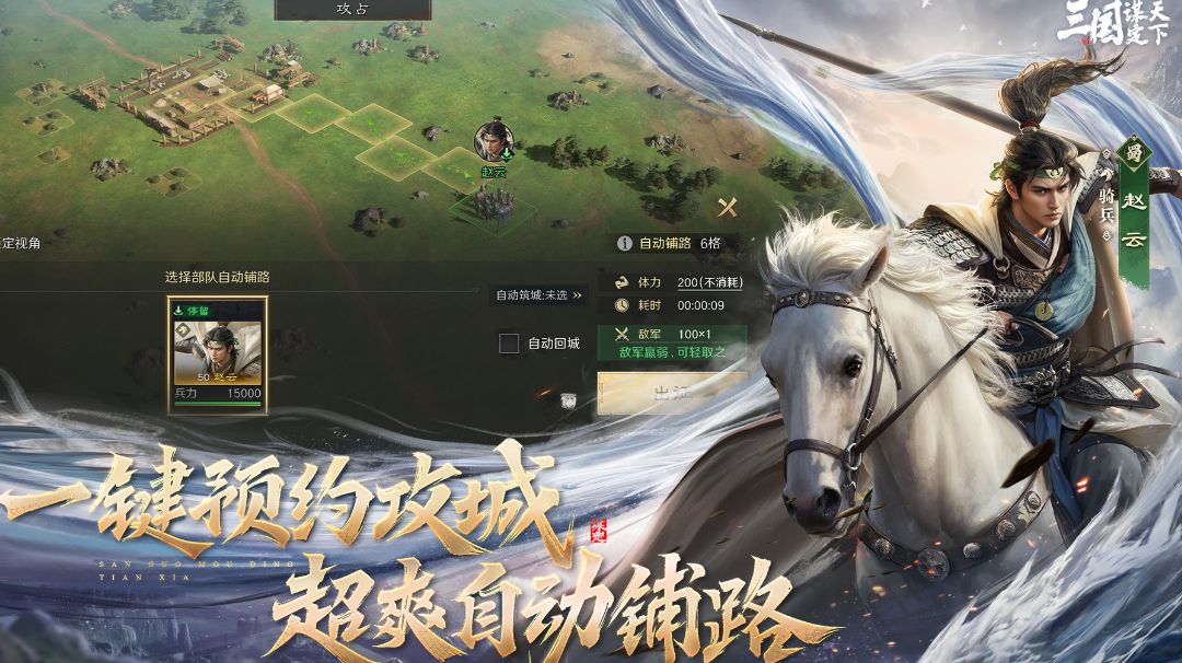 #三国谋定天下创作征集令 1、前期发展 游戏初期资源获取与规划 资源获取:游戏一开始,你需要收集木材、石料、铁矿和铜币等资源。这些资源可以通过开发土地、完成任务和参加活动来获得。建议从3级地开始开发,如果你有强力的队伍(T0阵容),可以尝试4级地。 资源分配:合理分配资源,优先用于武将升级、战法提升和建筑升级。 跟随主线任务 新手玩家要跟着主线任务走。每完成一个章节任务,全队武将都能恢复60点体