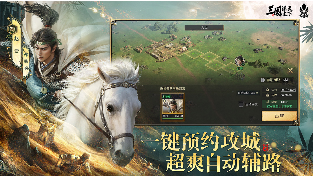 #三国谋定天下创作征集令 阵容搭配推荐 慢速智控流配置:5星司马懿、曹操、曹丕(魏),雁形阵(后排+双前排),全智加点(司马懿需三速)。核心:曹丕开场剥夺敌方减伤,司马懿借“九锡”叠智力后期爆发,曹操提供团队增益。技能:司马懿带胜敌益强、折冲御侮;曹操用潜龙在渊、金城汤池;曹丕配挫锐折锋。 混搭反击流配置:5星邓艾、夏侯惇、曹丕(魏),锥形阵(后+前+后),邓艾全智三速,夏侯惇全统,曹丕全智。核