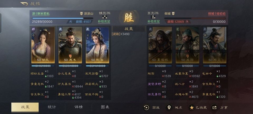 一字阵,在绝大多数三国谋定天下的游戏玩家眼里,可不就相当于没有布阵嘛!然而当我们细心一想,为什么游戏的策划团队要专门标注一字阵的所有成员都算前排呢?这里头,肯定是有名堂的! 在此特别鸣谢游戏ID名为“浪丨迹天涯”的玩家朋友,他对于荀彧和一字阵的处置简直堪称教科书级别。本文的宝贵创作素材,就是收录了他的战报。浪丨迹天涯的具体阵容,是用曹操、荀彧和陆逊并排,充分利用荀彧的建计举人,把治疗和火力都整到了