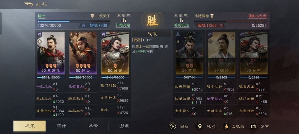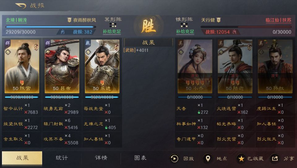 无双飞将吕布和先登猛士乐进,在三国谋定天下里组队搭班子,可谓是目前S3赛季的大热门。本文给大家带来的战报,是先登无双骑两个回合打爆对面孙权、陆逊和小乔搭配而成的夷陵弓。 在此特别鸣谢游戏ID名为“北境丨搁浅”的玩家朋友,给本文提供了宝贵的创作素材。无双先登在目前版本三国谋定天下的威力,想必已经无需多说,只是这两个回合打垮夷陵弓的成绩,着实把人惊到了。北境丨搁浅是如何做到的,一切且看下文分解! 陈宫