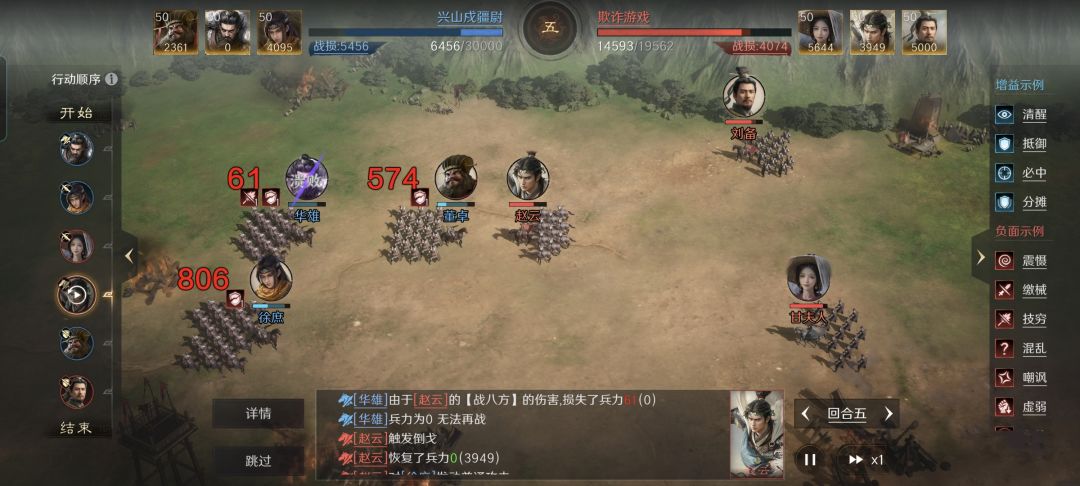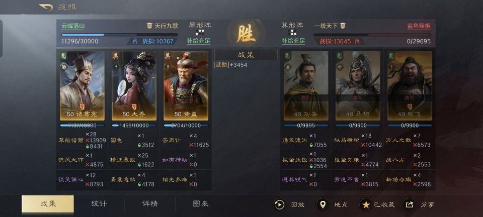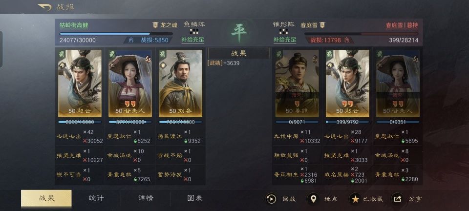 刘备和姜维,一个是开创蜀汉政权的昭烈帝,另一个是用生命救亡蜀汉的大将军,虽然他们并非父子骨肉,却更具传承的意味。在三国谋定天下的游戏次元里,能看到他们直接对抗,也算是值得嗑的瓜吧! 特别鸣谢游戏ID名为“牯岭街高健”的玩家朋友,给本文提供了宝贵的创作素材。他利用麾下的赵云、甘夫人和刘备组成长坂骑,经过激烈的战斗,强势拿下了对面姜维、赵云和甘夫人组成的天水枪。其实二者的区别就在于刘备和姜维,下面就带