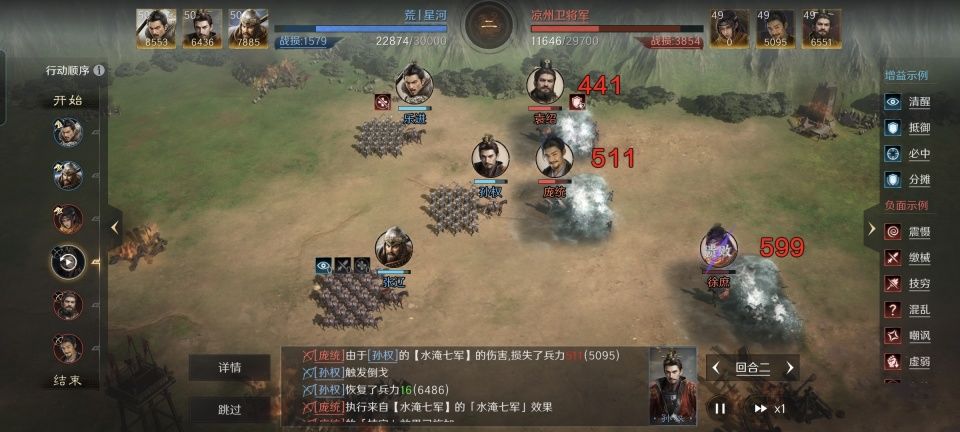 在《三国:谋定天下》的战斗中,我们会接触到非常多的增益和减益状态,有效利用好增益状态能为我们队伍的生存和输出创造有利条件~ 今天让我们跟随@三谋攻略君的介绍,一起来看增益状态在实战中的具体应用吧! 一、常规增益状态 规避 说明:受到伤害时有概率使该次伤害无效。 代表武将&战法:赵云【七进七出】、战法【风卷残云】 实际应用: 通过诸葛亮的狂风大作为敌我施加风暴状态,进而触发风卷残云的伤害与规避