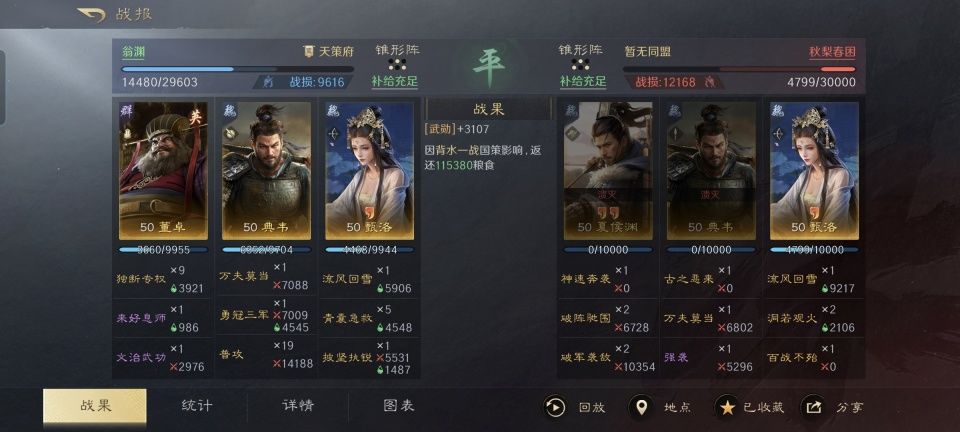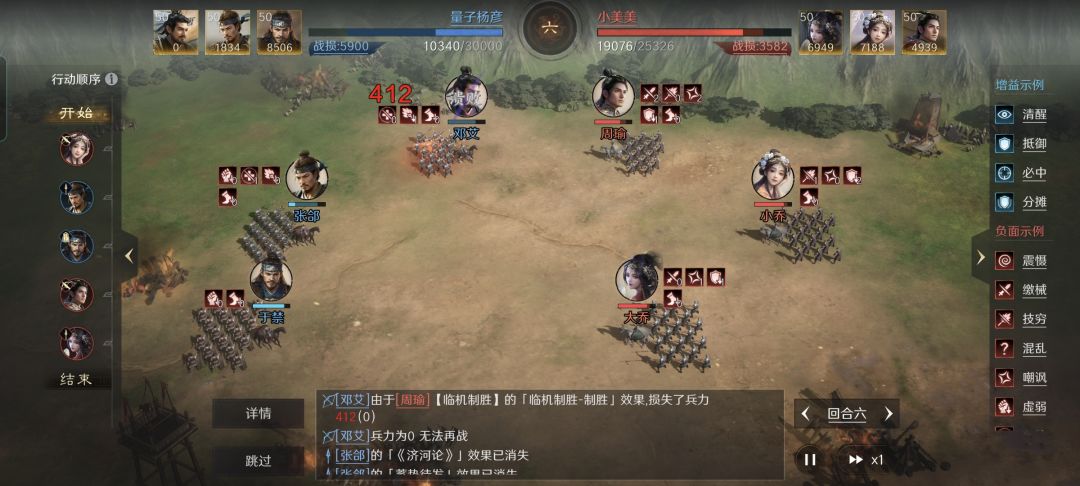 黑科技骑兵的代表人物庞德,还有如今正在逐步崛起的关羽,都是三国谋定天下里令人不容小觑的角色。任何对于正面遭遇了他们,都会付出惨重的代价才有可能取胜。 本文带来的战报,让我们再一次见识到了法师对于战士的蛮横压制力。在此特别鸣谢游戏ID名为“不诏”的玩家朋友,给本文提供了宝贵的创作素材。 不诏利用麾下的贾诩、曹操和司马懿摆出箕形阵,半场之内就锁定了胜局。司马贾的配置有哪些值得借鉴的亮点,我都给整理在了