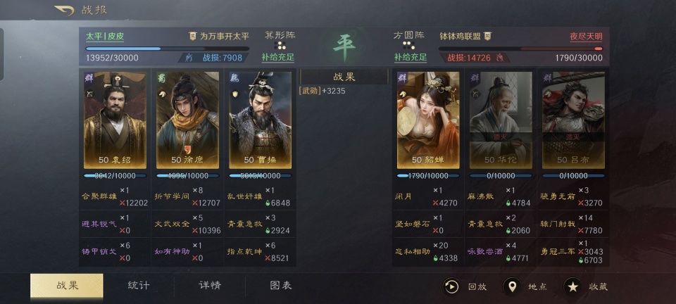 各位想必都知道,历史上的曹操为了得到徐庶,使出了多么不地道的招式。徐元直确实是个不可多得的人才,任何一位当世诸侯都渴望得到他的竭忠尽智。在三国谋定天下的游戏次元里,徐庶无论是武力还是智谋都相当的优秀,长期以来也都是文武队的输出核心。 由衷的感谢这位游戏ID名为“太平丨皮皮”的玩家朋友,他在世界公频分享的,是徐庶、曹操和袁绍组成的文武战队与吕布、貂蝉和华佗组成的群骑的较量。纵然吕布神勇无双,最终也还