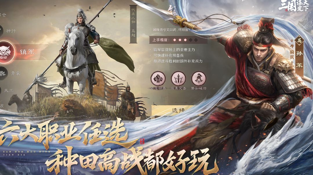 《三国谋定天下》超强攻略,无论你是刚踏入游戏的小萌新,还是想寻求突破的老玩家,这篇攻略都能助你一臂之力,在三国乱世中闯出一片天! 新手起步,步步为营 职业选择,至关重要 游戏里有六大职业,分别是镇军、青囊、神行、奇佐、天工和司仓 。新手前期开荒强烈推荐青囊和司仓。青囊能自制体力药,每天多60点体力,前期发育快人一步,就像给你配了个专属的体力小助手,别人还在为体力发愁,你已经一路狂飙了;司仓