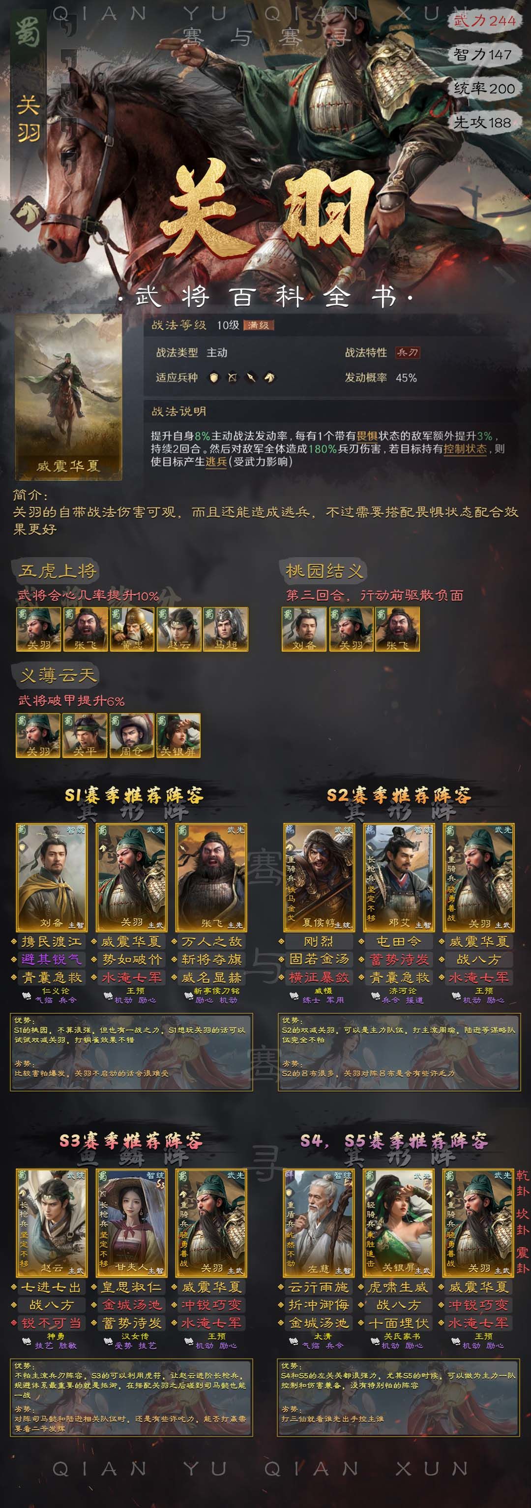 目前看,前两个武将,会在几个固定的里面出。。第三个开始就能拼脸了。。 说一下一赛季比较好用的武将: 不好抽的:三皇,吕布典韦(这俩需要曹操,金书),周瑜 相对好出的:小乔,黄忠 战法:锐不可当,万夫独一档的强 烈火,奇门,料事,狂风,断敌,法师队就这几个比较好用,所以法师很难组两队。。 打架队伍,上测的情况: 刘张黄,独一档 周瑜小乔体系,仅次于上面那个 典韦反击队或吕布反击队(需曹操,金书) 夏