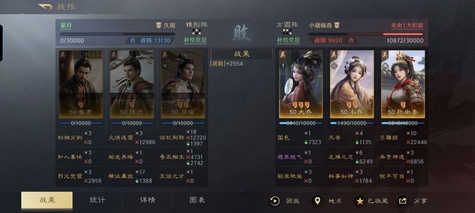 大乔、小乔和孙尚香三个江东美女组成的铜雀香,近期是大有崛起的势头,跟在S1赛季大行其道的铜雀弓相比起来,可谓是青出于蓝胜于蓝!即便碰上周瑜、陆逊和鲁肃配成的都督队,娘子军们也能轻松拿捏。 在此特别鸣谢游戏ID名为“未央丨大松鼠”的玩家朋友,大晚上打了这场战报,还专门在群里圈了一下我,遗憾当时我已经带娃睡觉了。所以嘛,只能在今天给补上了。未央丨大松鼠利用大乔、小乔和孙尚香摆出了方圆阵,半场时间便击溃