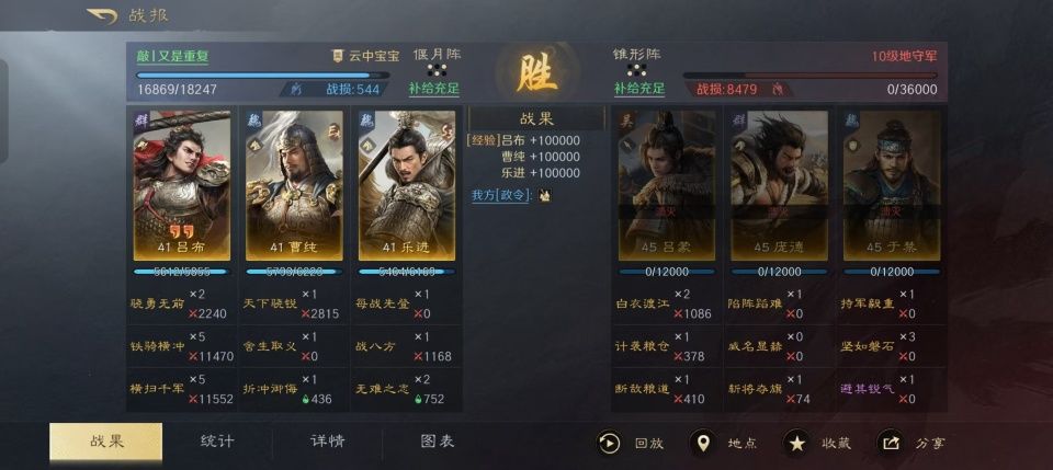 S4赛季正式开打好几天,关于新增武将曹纯的相关开荒战报还比较少见,基本都是左慈、于吉的三仙队占主流。堂堂的虎豹骑统领,咱总要给点面子吧!特别鸣谢游戏ID名为“敲丨又是重复”的玩家朋友,给本文提供了宝贵的创作素材。接下来,就让我们详细看看,他是如何用吕布、曹纯和乐进组成的先登无双虎豹骑,把10级地守军打得服服帖帖的。 吕布战法:骁勇无前+铁骑横冲+横扫千军。韬略库:叫阵(专属)+胜战善本+原官善本。