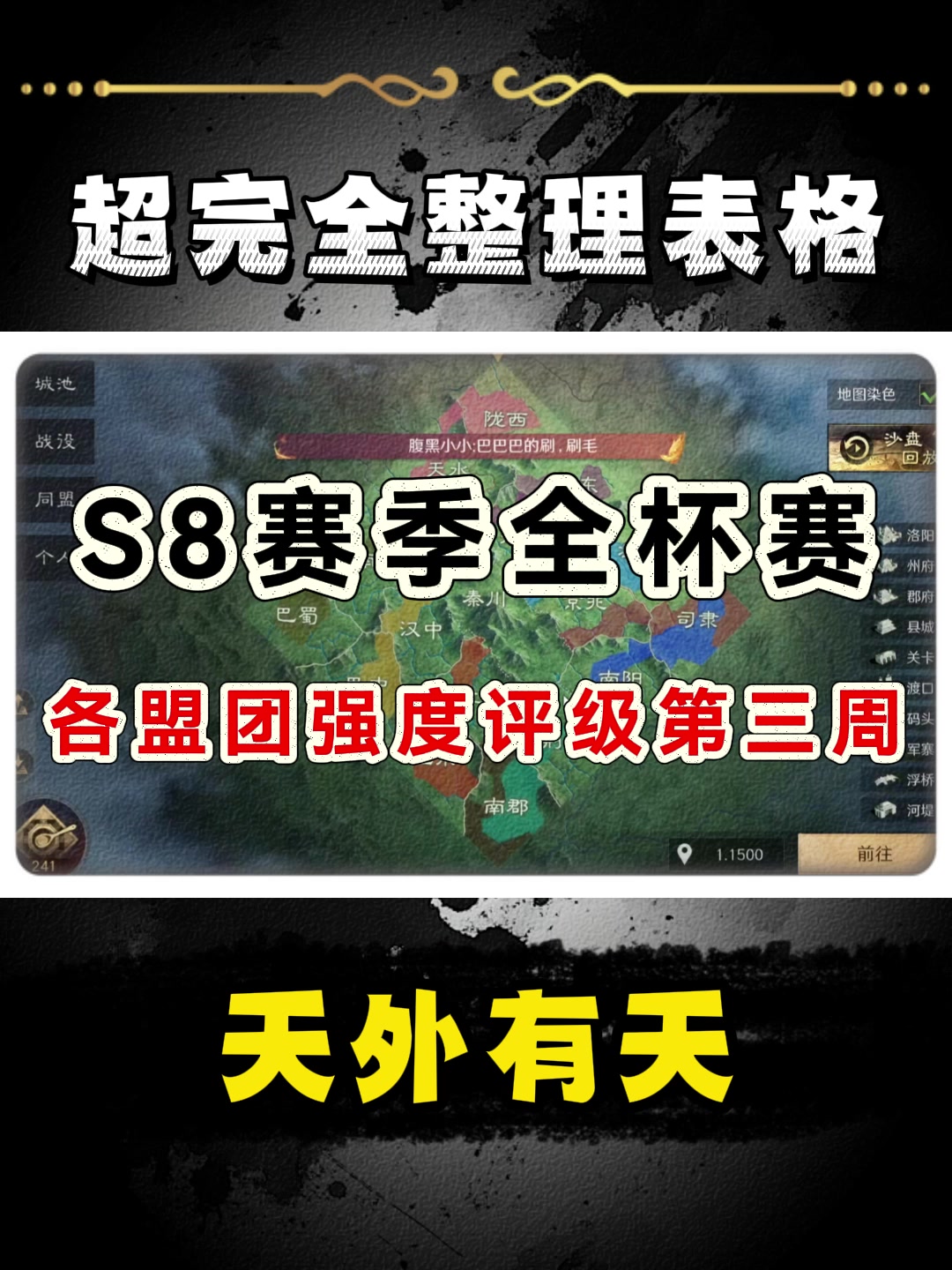 S8赛季第三周杯赛各团盟强度整理表格