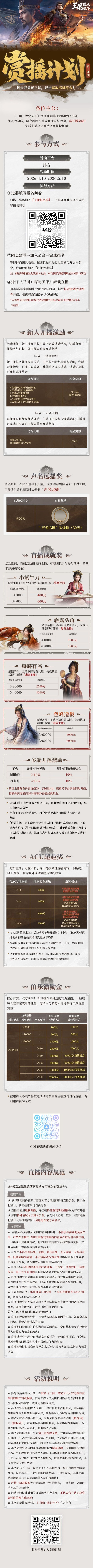 #三国谋定天下 #三谋新剧本陈仓之围 #三国谋定天下赏播计划 赏播计划 | 第十四期重磅来袭!抖音开播玩三谋,轻松赢取高额奖金!各位主公:《三国:谋定天下》赏播计划第十四期即将开启!加入活动群,随专属团长引导开播参与活动,赢开播奖金!优质主播享更高待遇及扶持机制~▼ 详细活动信息可见下方长图!