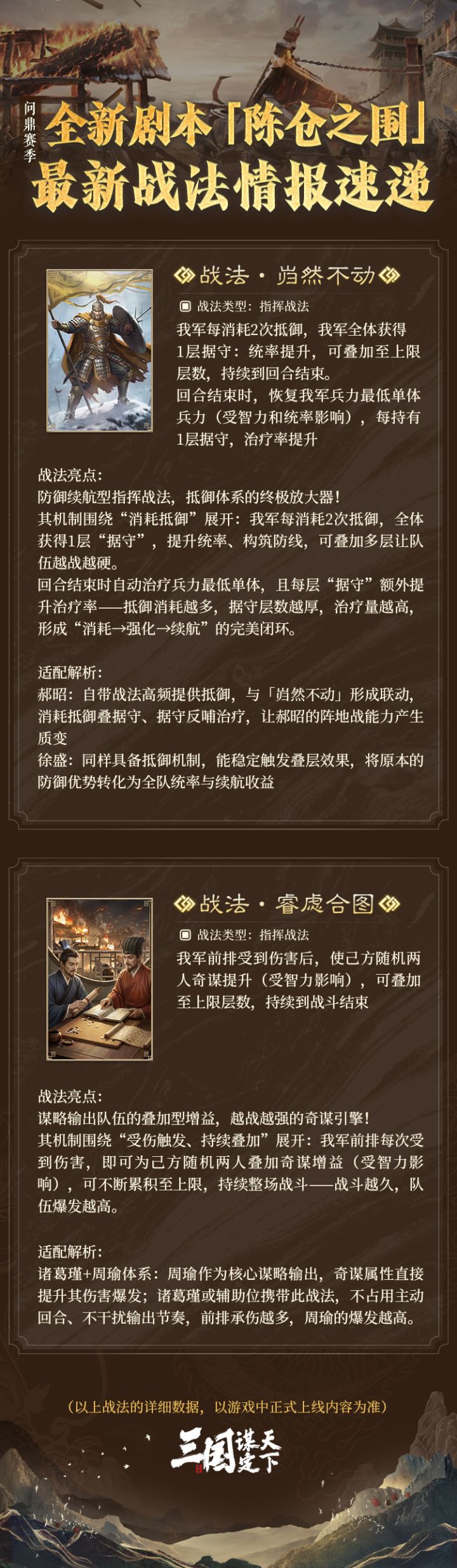 #三国谋定天下 #三谋新剧本陈仓之围 #听泉邀你云寻宝 #三谋328寻宝新服送328 问鼎赛季全新剧本「陈仓之围」| 最新战法情报速递!各位主公们好,本期乔妹将带来问鼎赛季全新剧本「陈仓之围」中新战法的最新资讯,快来看看都有哪些新战法即将登场吧!▼以下为全新战法的详情信息