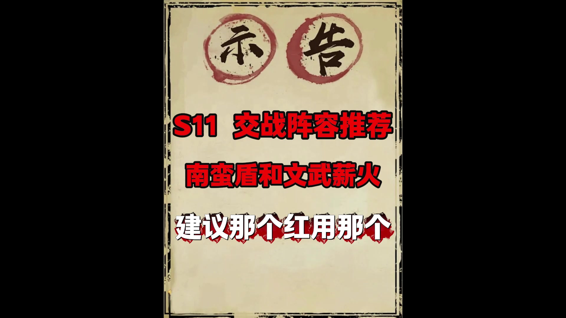 S11首日两套(二选一)阵容推荐(南蛮盾+薪火枪)
