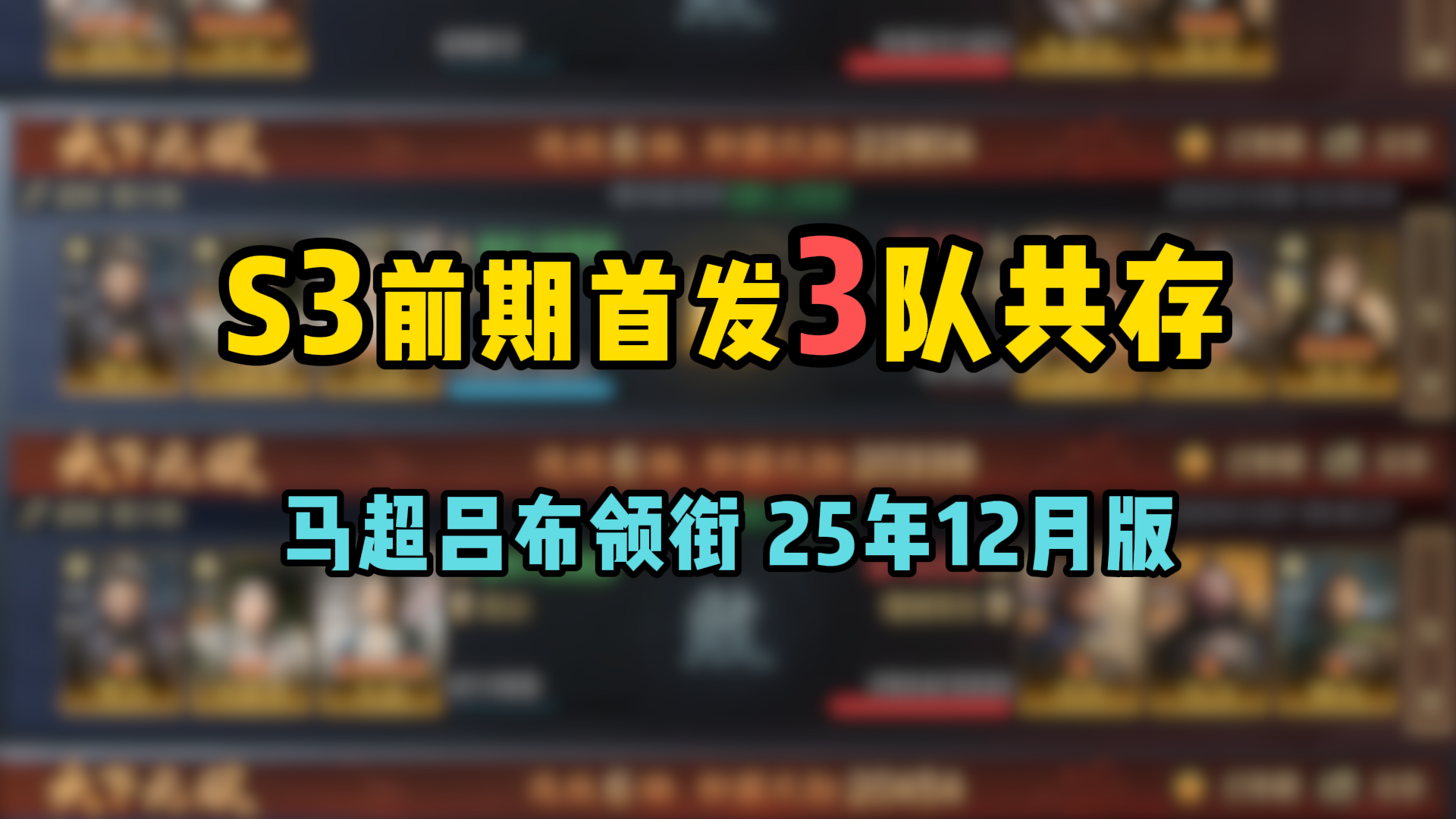S3前期首发3队共存,马超吕布领衔,25年12月最新版