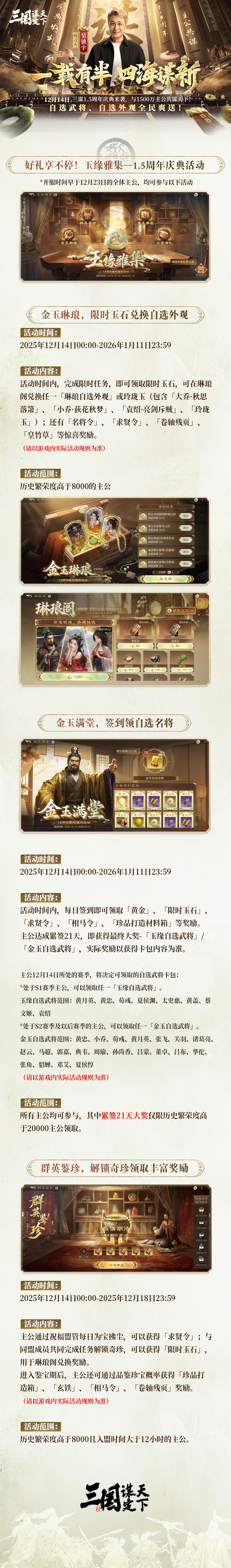 一载有半,四海谋新!1.5周年庆典之际,游戏推荐官明星选手TheShy、Wei、Rookie、GALA和Meiko也为三谋齐献祝福,与1500万主公一起欢迎盛宴! 三谋有你,登峰造極! #一载有半四海谋新 #三国谋定天下