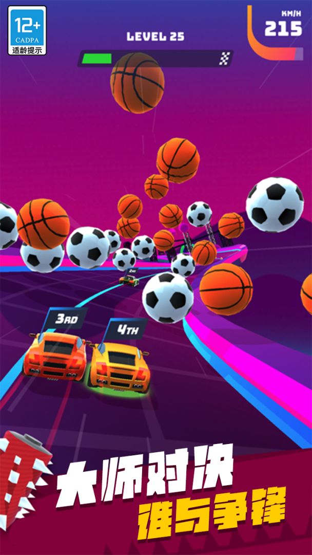 飞车大师是一款以超休闲赛车竞技为背景的竞速游戏,玩家在游戏中通过微调自己的赛车,在千变万化的赛道上与其他对手展开激烈的竞速对抗,同时还要躲避各种令人意想不到的变化障碍,超快、超刺激的迷幻体验,将带给玩家令人意想不到的游戏爽感。游戏中具有丰富的关卡内容,各类的障碍与道具,提升了游戏的策略性与选择性,玩家通过左右滑动,选择前进方向和躲避障碍物,收集一定数量的第一名金奖杯还能解锁特殊关卡!