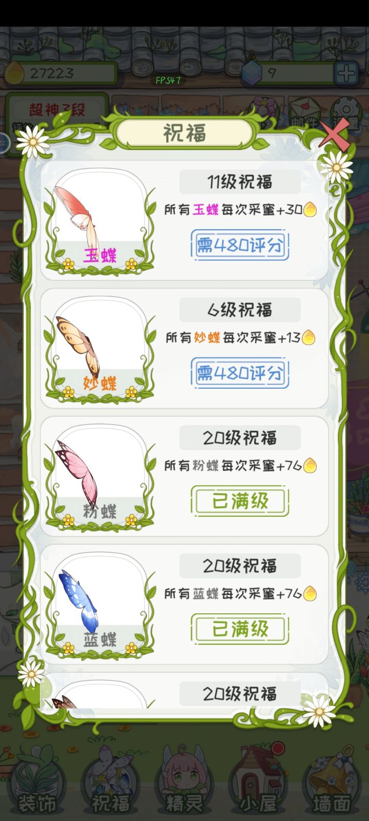 蝴蝶祝福:20级满级