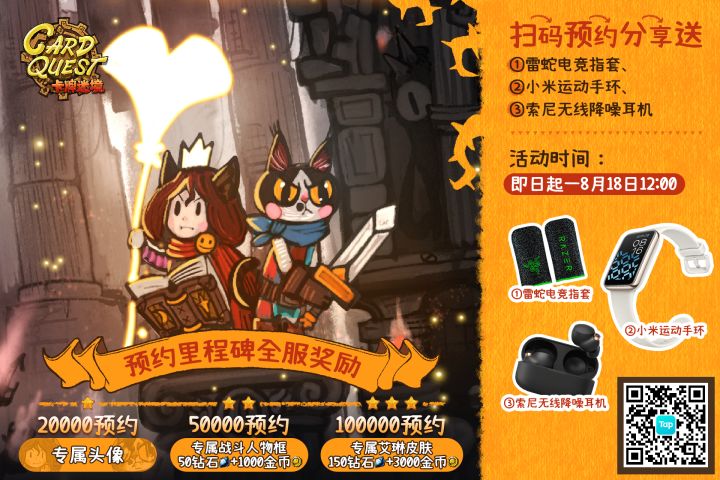 (已开奖)【预约福利】预约分享《卡牌迷境》免费送索尼无线降噪耳机、小米运动手环等超多福利,预约里程碑即日开启~