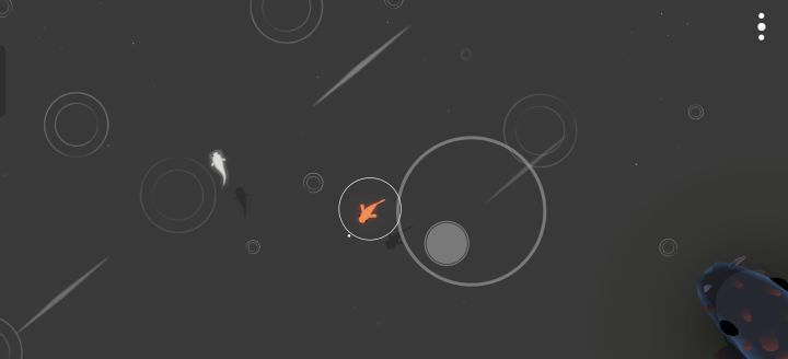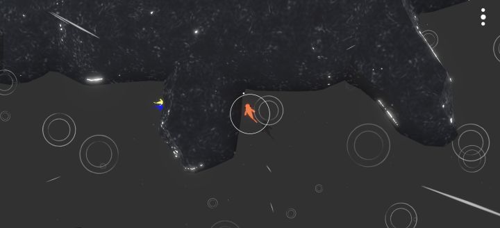 小鱼总是不停的被冲走,大鱼走出半里路了回头一看小鱼全在老远的石头里卡着,于是踏上了 找到小鱼——和小鱼走——小鱼被冲走——回头寻找小鱼——和小鱼一起被冲走——找到小鱼 的轮回之路,(在某些特定区域,如大小鱼分别处于靠墙的石块两端时小鱼就会不知去路而呆住,即小鱼有时不会绕路)小鱼的跟随机制似乎不太足啊,这真得让我扣?了,也许是我操作太差?