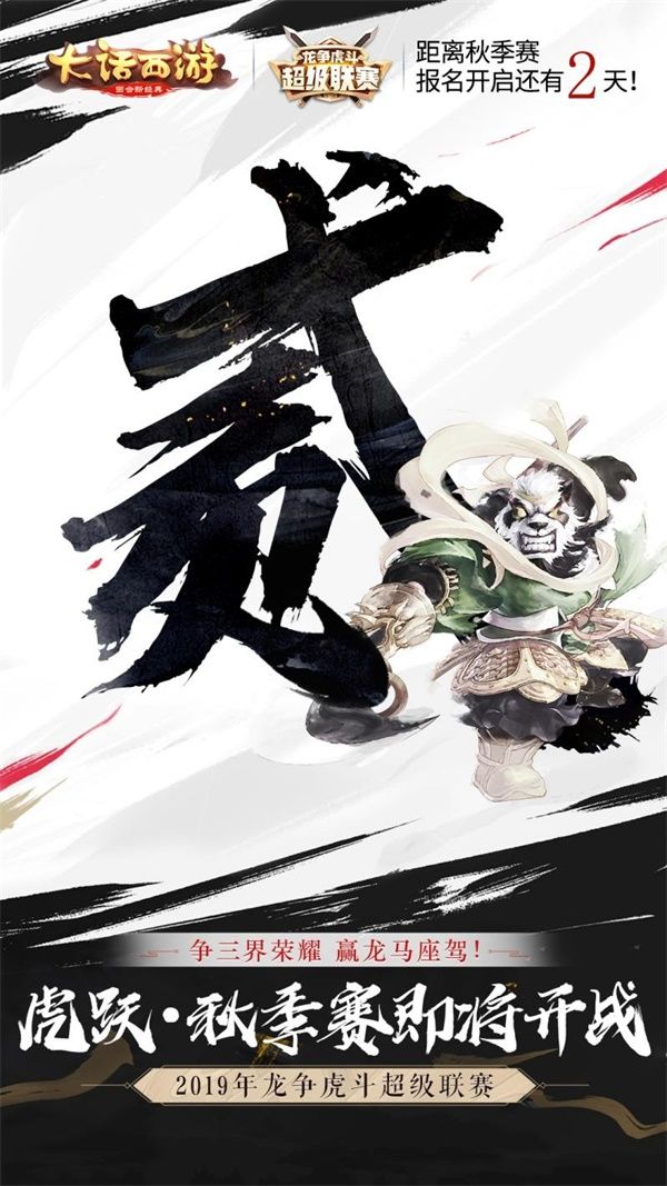 三界制霸,巅峰对决!2019年《大话西游》手游年度重磅赛事——龙争虎斗超级联赛·秋季赛即将正式开赛,目前距离报名开启还有2天!9月12日,赛事报名阶段将正式开启,三界群侠将再度汇聚一堂热血开战,喜爱PK的你不要错过这次参与比赛的机会,快来报名参赛,登顶三界之巅,争夺珍稀龙马座驾吧!燃情备战!虎跃·秋季赛赛程曝光!秋季赛具体的赛程信息也在今天曝光,在此秋季赛共分为三大阶段,9月12日-9月19日