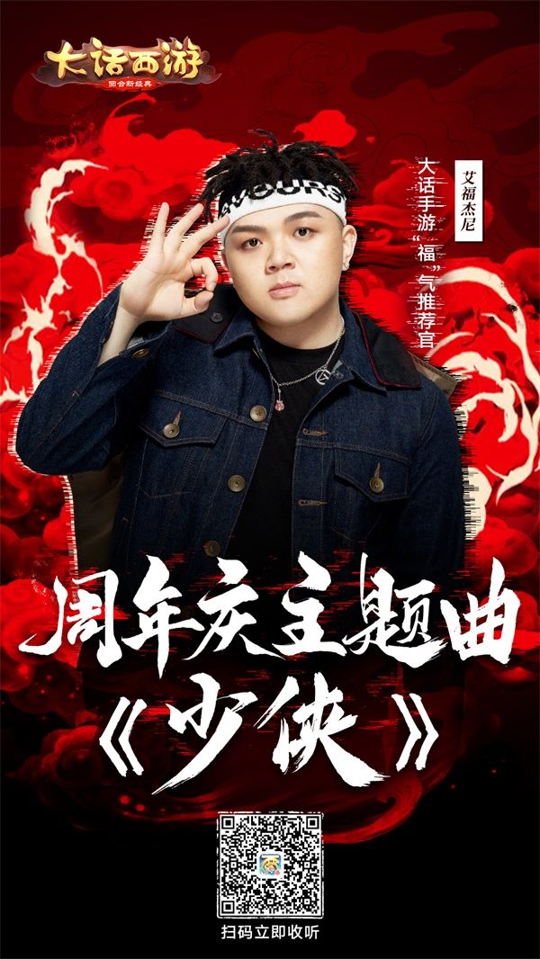 周年有你共欢庆,一曲唱尽兄弟情!9月17日,《大话西游》手游917周年庆正式开启,除了有龙族宝藏录、狂欢抢购节、海量豪华奖励等一系列活动即将陆续登场此外,大话也将为三界侠士们不断献上新的惊喜。“福”气推荐官艾福杰尼情义助阵大话手游,917周年庆主题曲《少侠》今日正式上线!惊喜揭晓!周年庆主题曲《少侠》正式曝光!此前,大话为玩家们预告917周年庆主题曲将在今天上线的消息,预告海报中的神秘少侠今日