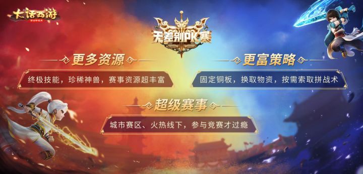 公平竞技,全民争霸。2019《大话西游》手游无差别PK赛即将来袭,一场全民公平竞技的盛宴将重磅开启!四大赛区万事齐备,等待热爱PK的你前来报名!全面升级!2019“无差别PK赛”即将开启风云涌动战鼓响,全民争霸共狂欢!为了给所有大话玩家们打造出一个公平公正的竞技平台,让更多人能够享受到更丰富的PK的乐趣,在成功举办了两届赛事之后,2019大话手游无差别PK赛迎来全面升级,将在5月强势开启!本届