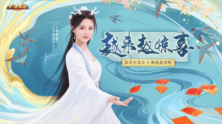 绝美龙女,惊喜化身。《大话西游》手游全新种族龙族即将登场,新种族预约活动也已全面开启,火箭少女101人气成员杨超越更化身惊喜小龙女,亲自为大话玩家们送上重磅惊喜!今日,大话首个粉丝专服“为爱超越”喜迎开服,大话携手杨超越,为喜爱超越的朋友们带来一大波福利与趣味活动,等待大家前来参与!为爱超越——大话首个粉丝专服今日开启!几率化身,超越惊喜。新种族龙族即将登场,杨超越更化身惊喜小龙女降临大话,为