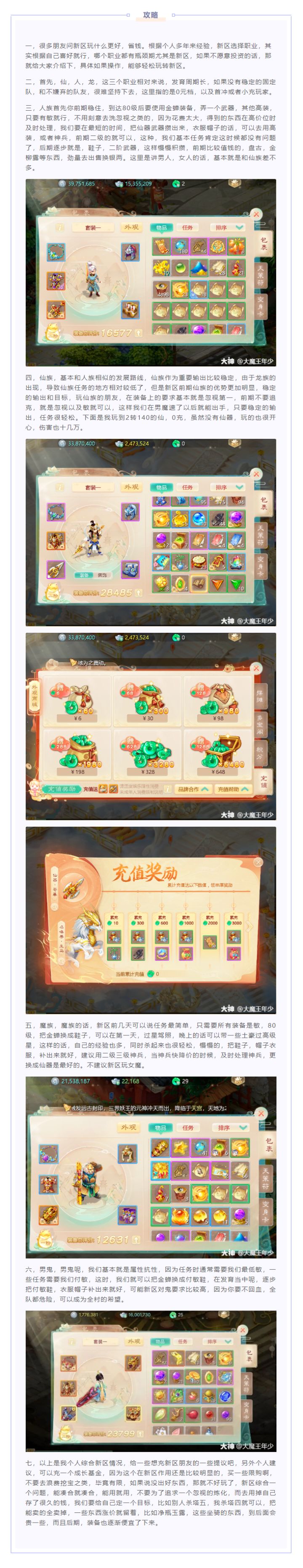 这期攻略干货为主,尽可能简单明了,如有漏掉的内容,欢迎大家评论区补充本攻略为玩家经验分享,仅供大家参考,不代表官方观点。【第一部分】- 选角色0元党及基金党(不投资或者只投资一个168基金+鑫卡的玩家)建议选择的角色:女人、男魔、男鬼原因:女人:在前期可控可输出,在杀5-9星的阶段,有很好的控场和补伤害的作用,且其他输出种族的输出都不高的前提下,女人的存在感就很强,此外,女人只需要挂毒