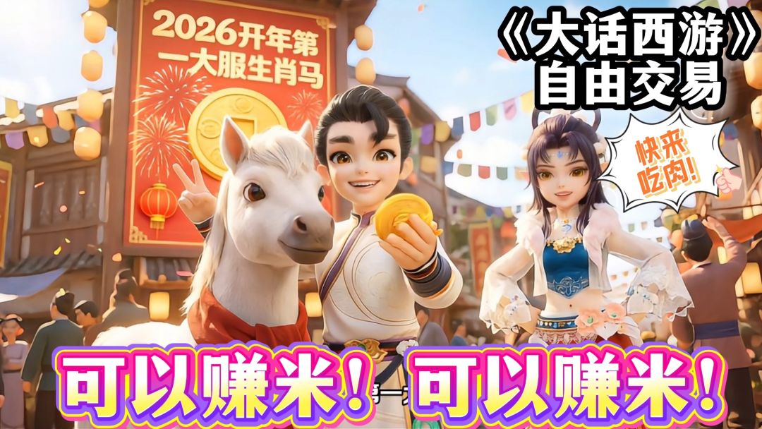 全网顶流主播、神豪、财经大V集体入局《大话西游》手游自由交易服!零审核 、零干预,纯自由交易,道具高价保值,手机就能轻松搬砖赚外快。并有马年生肖服重磅上线,生肖币升级更保值,更有绝版坐骑、强力战宠相送,游戏与财富的狂欢不容错过!#大话西游 #大话西游手游