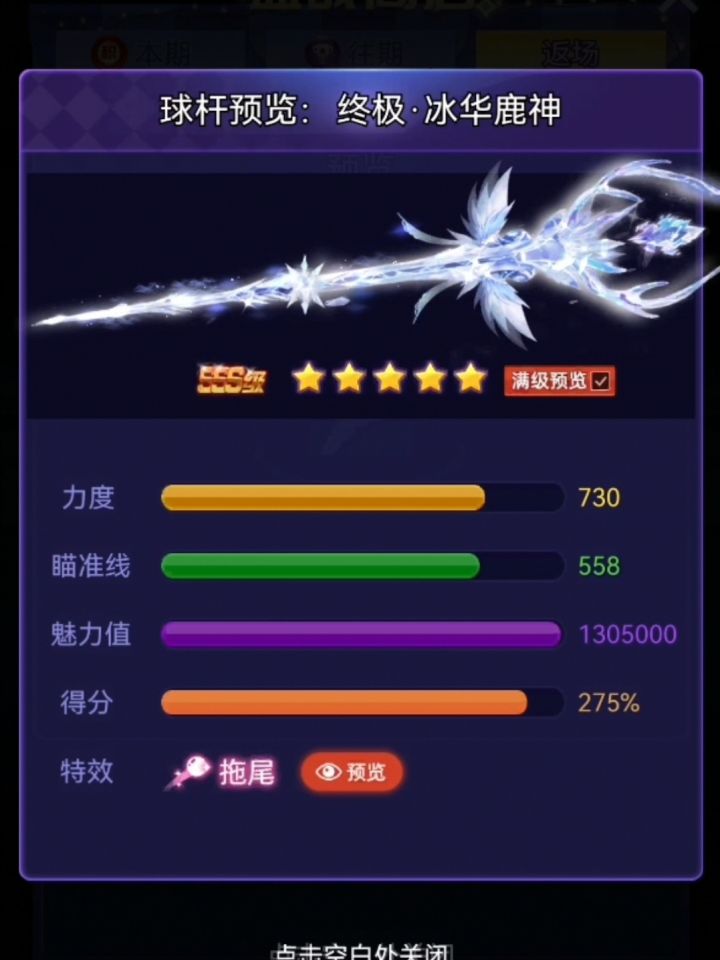 【装备图鉴】🎯《天天台球》球杆图鉴:属性与手感的交响“属性定义了球杆的极限,但唯有你指尖的触感,能定义它的灵魂。在力与美的平衡点上,每一次击打都是独一无二的乐章。”—— 天天台球某年年度数据分析报告1️⃣ 冰华鹿神球杆类型:经典款满级属性:力度730,瞄准558,魅力1305000获取途径:血战商店(积分,返场)2️⃣ 凤舞霓裳球杆类型:经典款满级属性:力度716,瞄准56