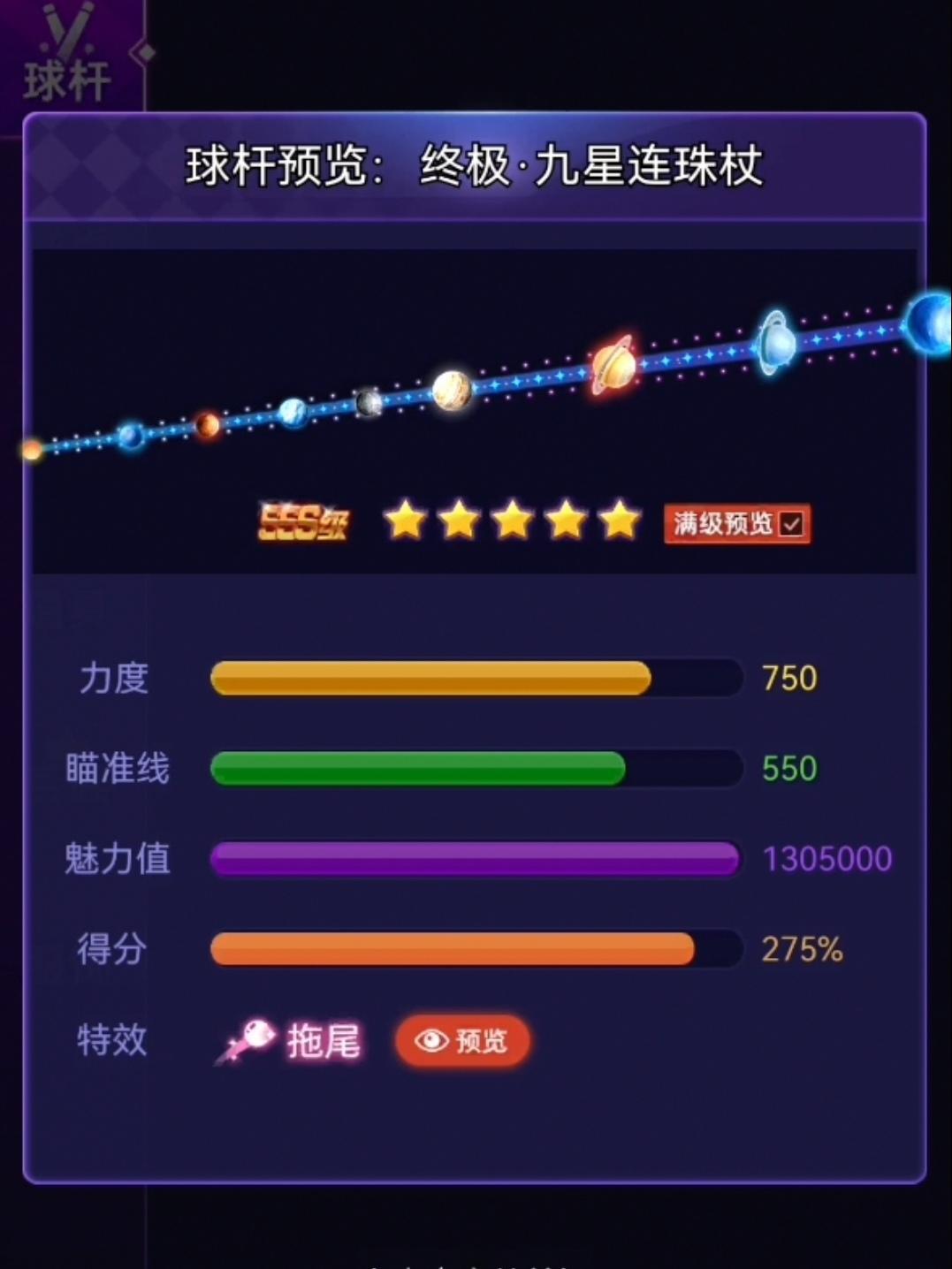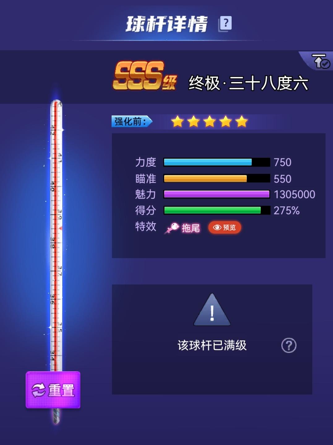 【装备图鉴】🎯《天天台球》球杆图鉴:从经典传承到极限突破“在指尖与屏幕之间,球杆不仅是击球的工具,更是风格与战术的宣言——每一支背后,都藏着一段等待被唤醒的传奇。”—— 摘自冠军选手“风轻云”的采访手记1️⃣ 三十八度六(温度计)球杆类型:经典款满级属性:力度750,瞄准550,魅力1305000获取途径:购买2️⃣ 九星连珠杖球杆类型:经典款满级属性:力度750,瞄准55