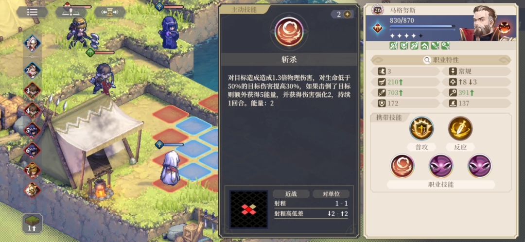 第一场战斗没什么好说的,不上场人都可以过,只要歌洛丽亚和他两个骑士就行,最后BOSS让自己的骑士盾击撞死的。。。 第二场我试过失败,还是没其他结局,就正式开打了!过程看视频。卡尔拉过来的时候看了下BOSS状态,结果BUG可以剩余的移动力移动,就绕后打了一下。 歌洛丽亚:扬旗进军、圣枪投掷、飞檐走壁(SSR手)武器加200速的SSR武器 麦莎:麦莎连击,麦莎助威,带全村最好的剑和盾 奶妈:物攻颂赞、恢复颂赞、带了两个垃圾装备 卡尔:背刺、超飞索(钩索也可以)、带的圣剑和吸血手 舞女:自带技能,带的圣剑和杀戮手 感觉骑士线全程只需要培养麦莎(麦莎连击和麦莎助威有就必学,然后学个援护技能)、法卡尔(学警戒类技能和杀人加2能量的)、歌洛丽亚(标配圣枪投掷、扬旗进军、反应技能扬旗也不错)、卡尔(学背刺或者杀人加攻击次数的技能)、自带SR奶妈(学群奶和群BUFF)。其他技能就随缘了。 装备: 卡尔圣剑必备、 麦莎就带全村最好套就行, 歌洛丽亚带个加移动的手, 法卡尔SSR弓都可以。 舞女装备有SSR武器都行,没有也不强求不挑。 至于另外两个SR兽人刺客和弓手用起来都没卡尔和舞女好。毕竟品质差了点。 酒馆出的SSR就带1-2个自己没有的职业搭配下就行。
