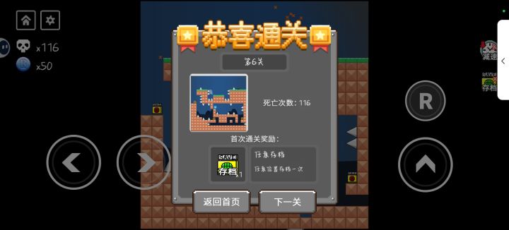 - 缺点:关卡难度提升快,第二关开始难度显著增加,陷阱常出现在意想不到的地方,很考验玩家耐心; 手机操作手感奇怪,不如键盘;游戏中存在广告,且广告内容重复;复活机会有限,前期每天每关有50次,后续会递减,从关卡选择进入可刷新。