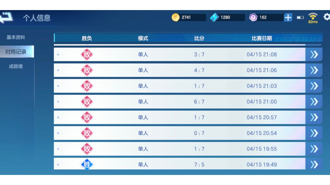 第一把被按着摩擦,第二把又排到了大佬,这次终于赢了,打断了大佬的连胜😂 大佬的控球真的稳,各种打死角拉扯,而且时停把握的很6,一停下来节奏就断了,根本救不了球。 分享一下对战过程。第一把1-5第二把5-4第三把7-5。