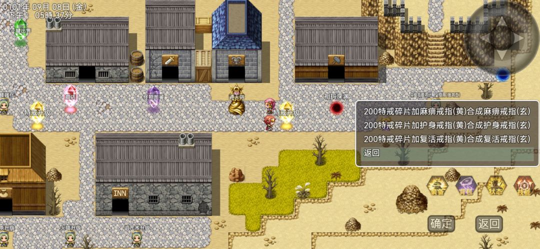 游戏界面方面: 隐/显:隐藏/显示方向盘和装备、背包、状态、技能等操作栏 榜:安照你身上穿戴的装备的总攻击(只看攻击且不区分魔法、道术、攻击力)进行排名。 聊:打开/关闭左边的聊天记录(聊天记录里会显示谁打到了神话装备、不过你自己打到了好像看不见你自己(应该是个BUG) 屏:屏蔽称号和别的玩家 背包:不用介绍都懂,特别提醒一下背包里不能穿戴装备,也不能卖装备。 状态:查看你的属性 技能:查看你学过
