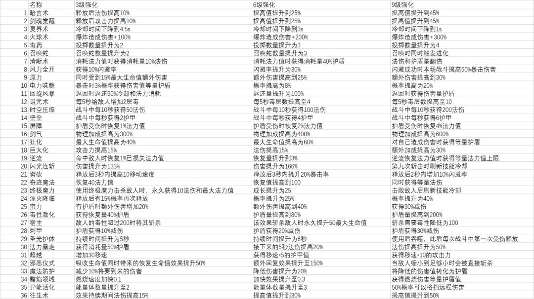 (已送审,如没上线请稍等) 技能 暗言术 基础下调,新增法伤收益 灵界术 cd下调,新增只能储存一个 治愈术 cd下调 诅咒术 减伤量整体下调 刺甲 增加生命值提升 折磨 修复了不会及时计算的bug 法力暴走 下调到白色 转职 战士(一转) 1.新增减少30%远程伤害 2.获得生命值下调为600 科技战士 1.攻击提升技能急速提升为2 2.修复了带攻击特效技能不触发的问题 鬼剑士 1.攻击力偷