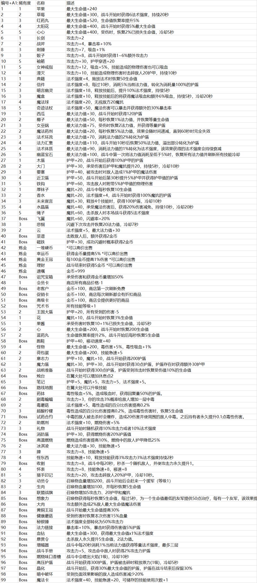 因为时间关系,暂时没能在游戏内置图鉴,非常抱歉给大家造成了不便 临时整理了一份文档给需要的小伙伴们,后续版本会尽快补充相关内容