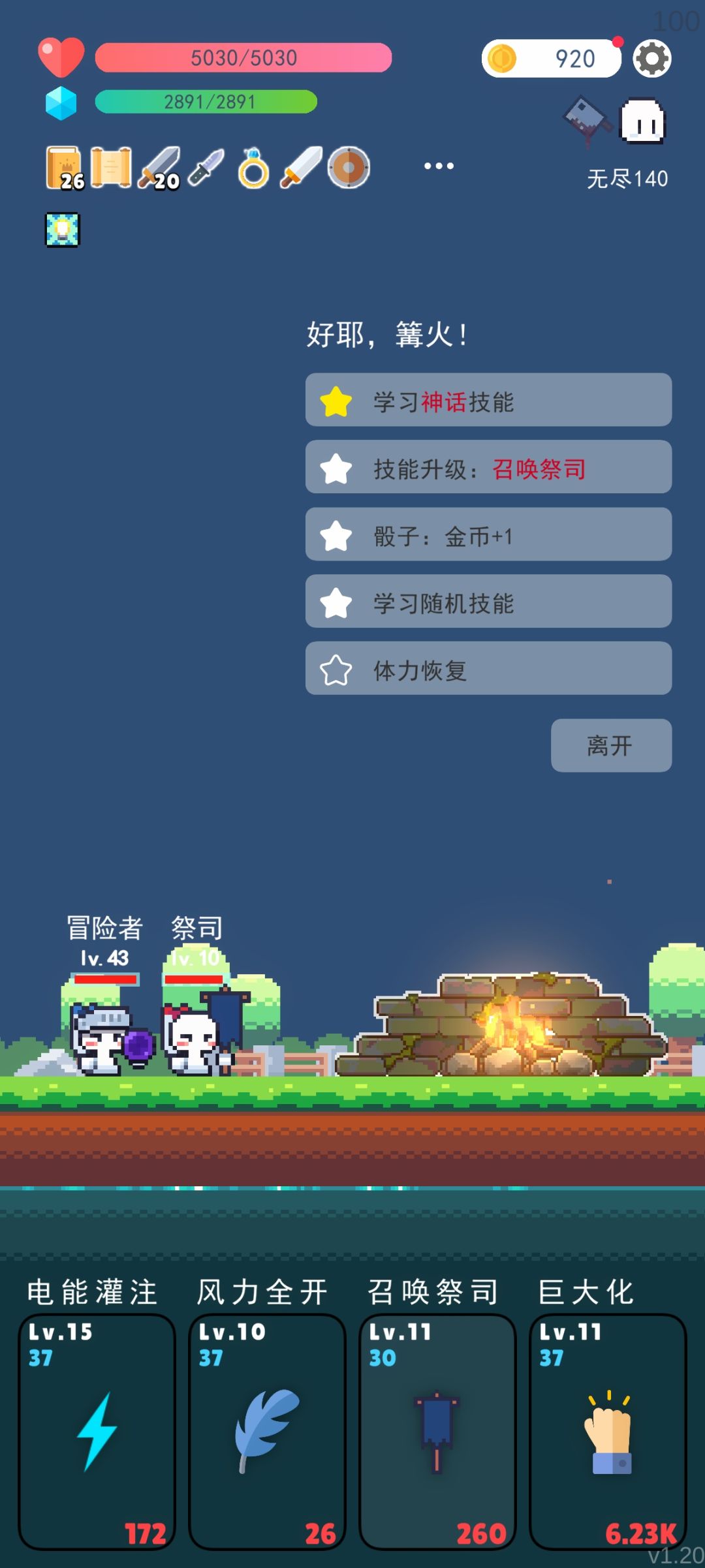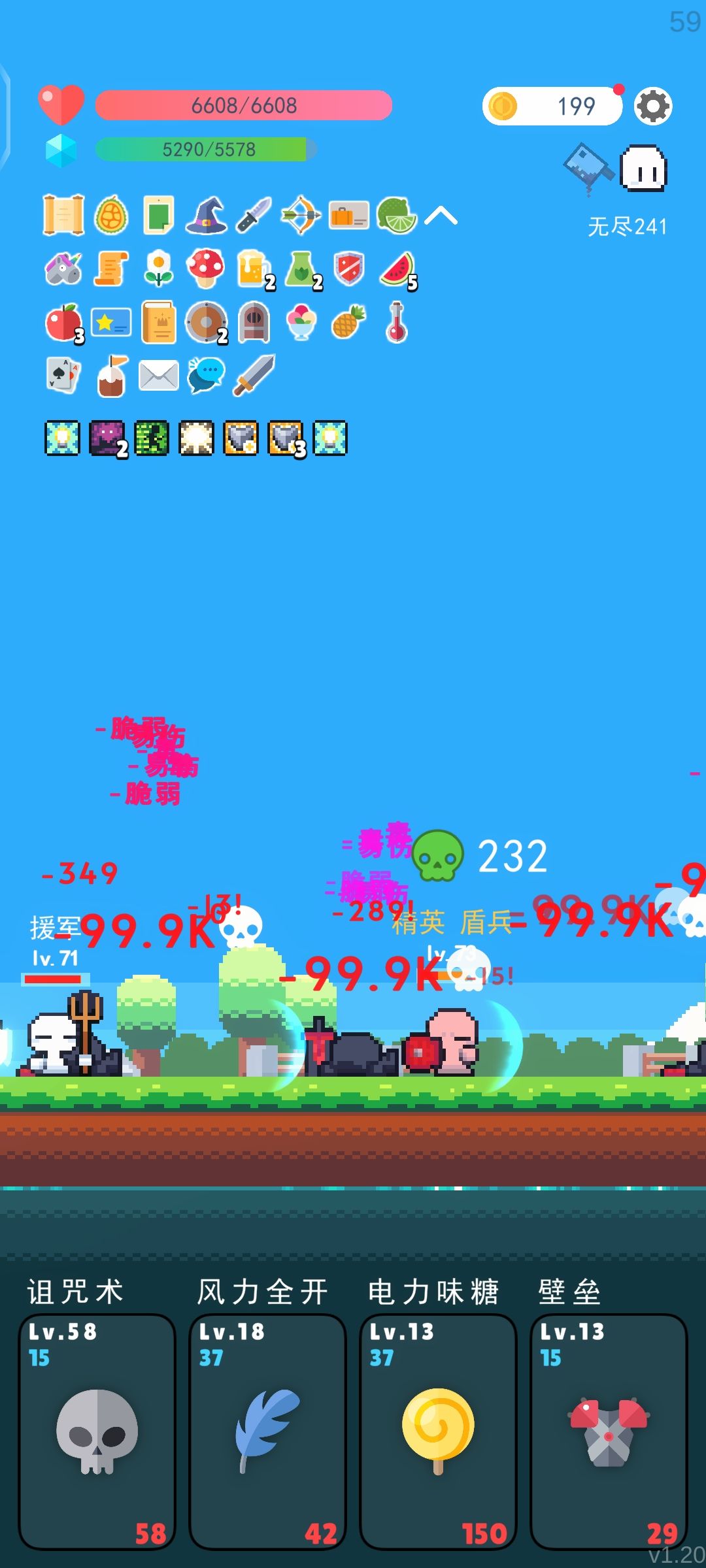核心改动 首先说下1.19的核心改动,就是取消了技能等级限制,终于可以不用像1.18一样束手束脚了,个人感觉这个改动还是挺舒服的,技能上限的改动导致无尽模式核心玩法也改变了,不用像1.18一样选好搭配直接跳过技能升级,因为1.19可以无限升级,所以每次升级机会都可以利用。说一下快速升级的方法,众所周知,刷新技能通常白色技能出现概率最高,所以我们先升级没太大用的白色技能,比如说召唤蛇,这个技能是1.
