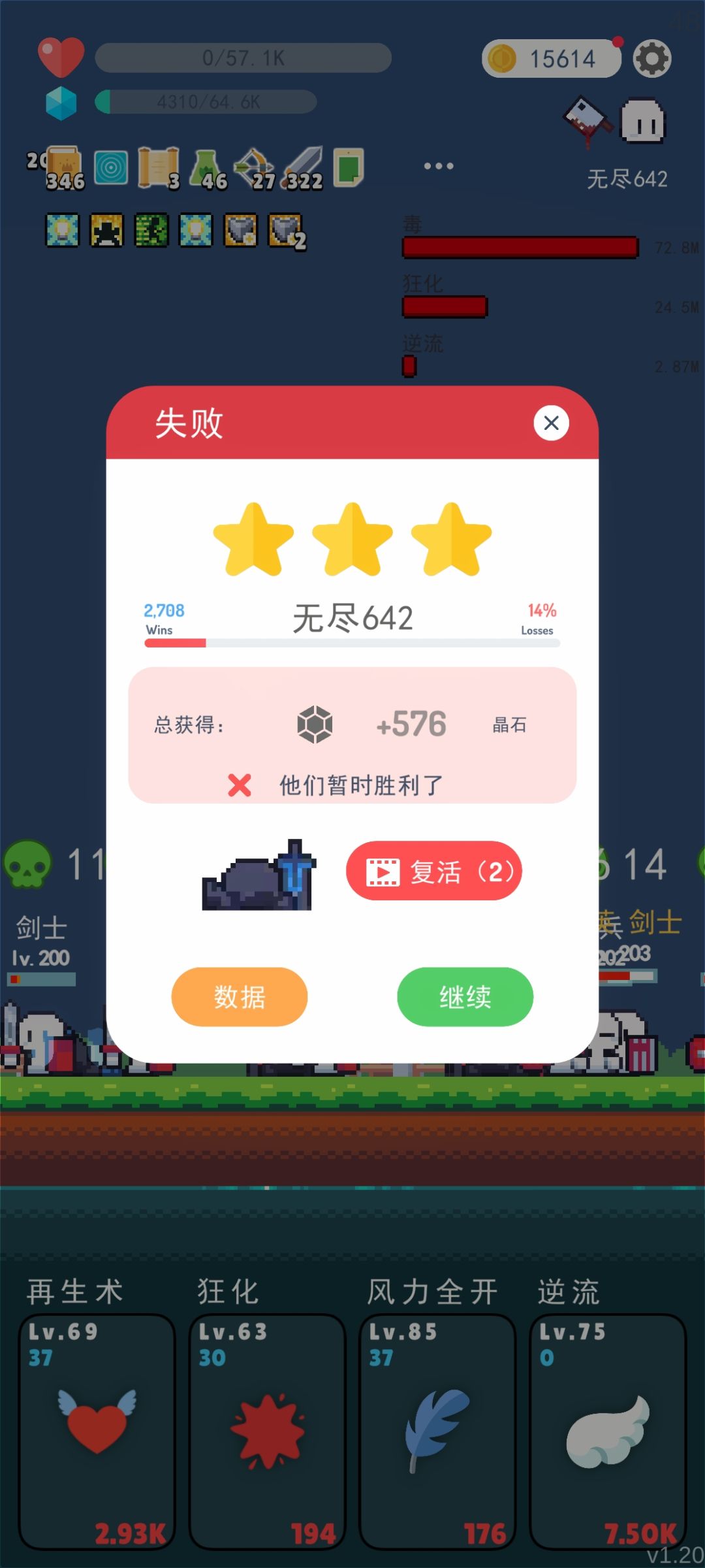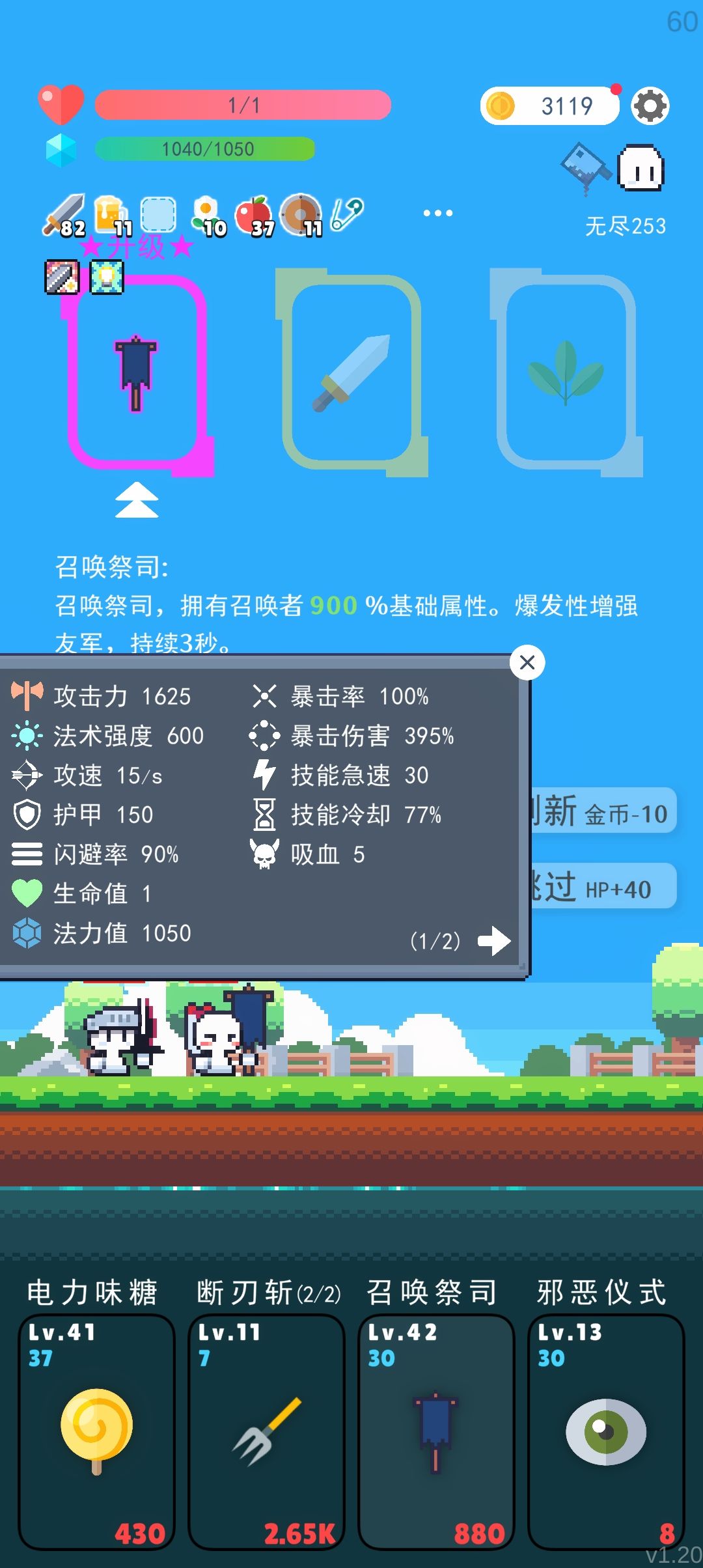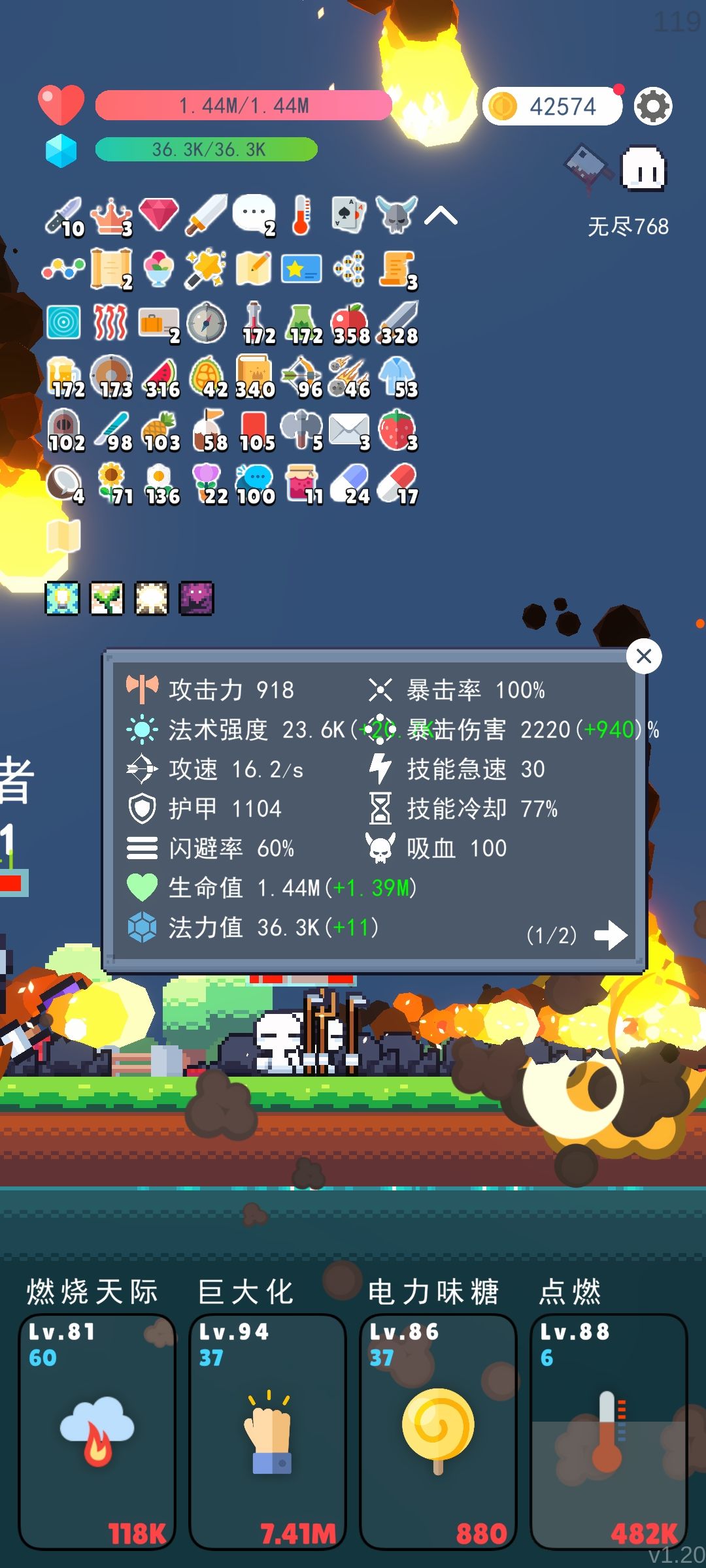 无尽后期(1200关以上)防止暴毙的方法 1200关以上开始会出现暴毙 原因是速度太快,冲到怪物面前的时候还没有使出技能就被敌人打到了(如伟大奉献狂化等),导致被敌人秒杀 解决的思路就是不能太快,并且要有一个快速攻击技能(这里选的是剑气) 控制速度的办法就是不能用断刃斩,并且不能拿太多怀表(建议控制在6个以下),这样才能保证怪在攻击你之前被打死 风力全开可以带,因为一般是最后施放,所以速度冲起来的时候怪一般已经死了