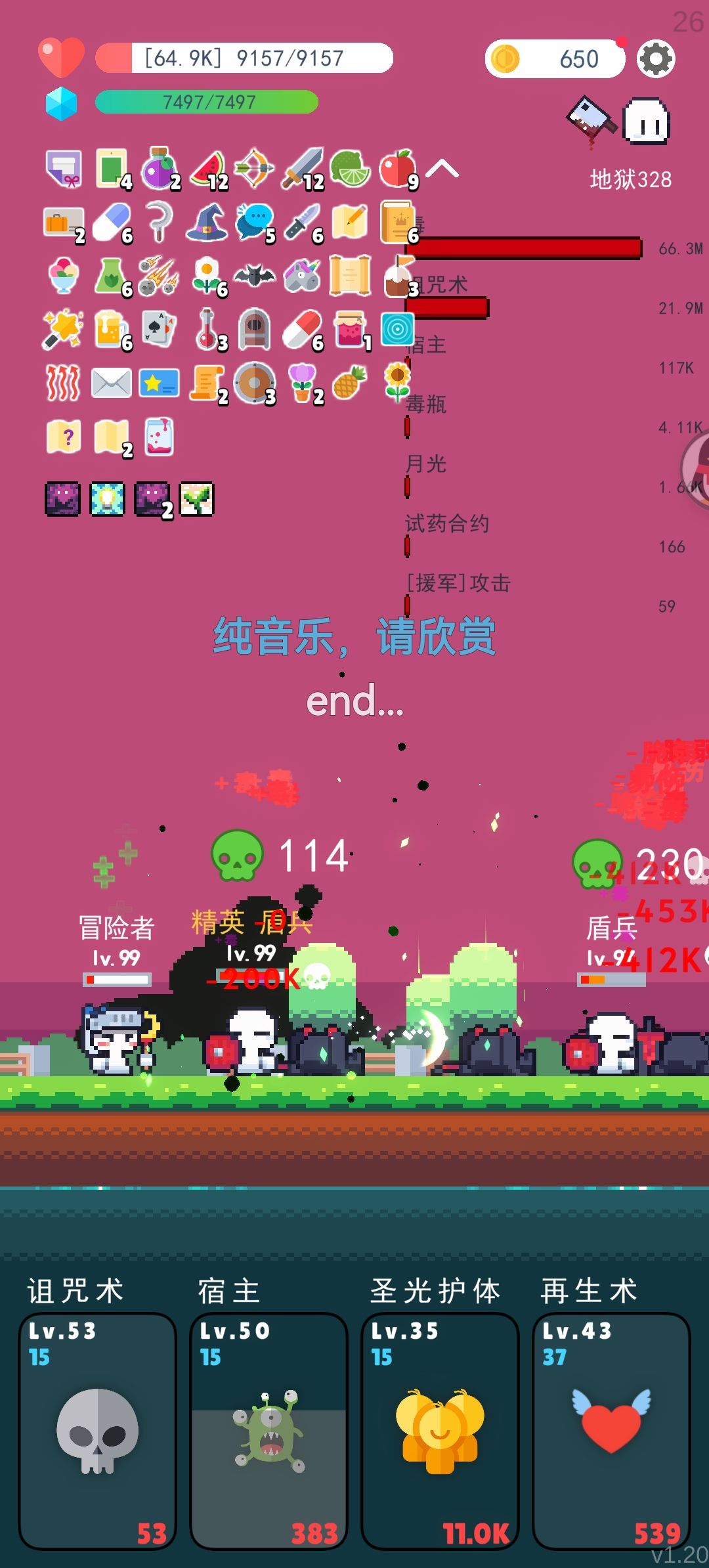更新这几天一直在玩,然后就发现了奇葩的地方无尽的商店是越来越贵的到了三百多的时候基本上都是过两个BOSS关才有资本消费一下,最关键的是那个通关加奖金的东西好像全删除了,而且菜谱也变成了有概率触发,本来给的就不多还玩这一出,很好的解决了玩家钱太多的问题[表情_斜眼笑]然后就是其他流派伤害是真的严重不足,刷一关5分钟算快的了。唯一比较快的可能是毒了,我推荐先学诅咒术,然后拿试药合约,转职法师二转的话这