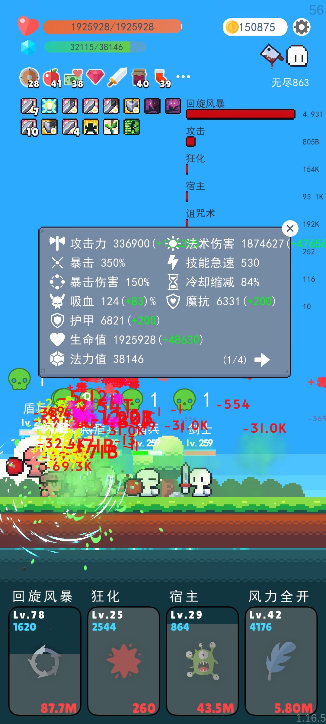 看了论坛里的很多攻略,发现大家的思路可能都偏前期一点,输出都比我高很多,但到两三千关的时候没有保命措施很容易暴毙。 我的话后期输出主要靠普攻,朴实无华。道具的话前期可以多买买,后期除了减cd别的买不买影响不大,后期不差这点。 其他尽量选保命的技能,保命技能放后台,前台技能影响不大。另外我用的狂战士加铁剑快速叠盾,输出打盾兵和奶的时候经常不够,只能磨时间,靠收割秒杀。 但是这样比较稳,我已经四千多关了,继续向榜1前进~