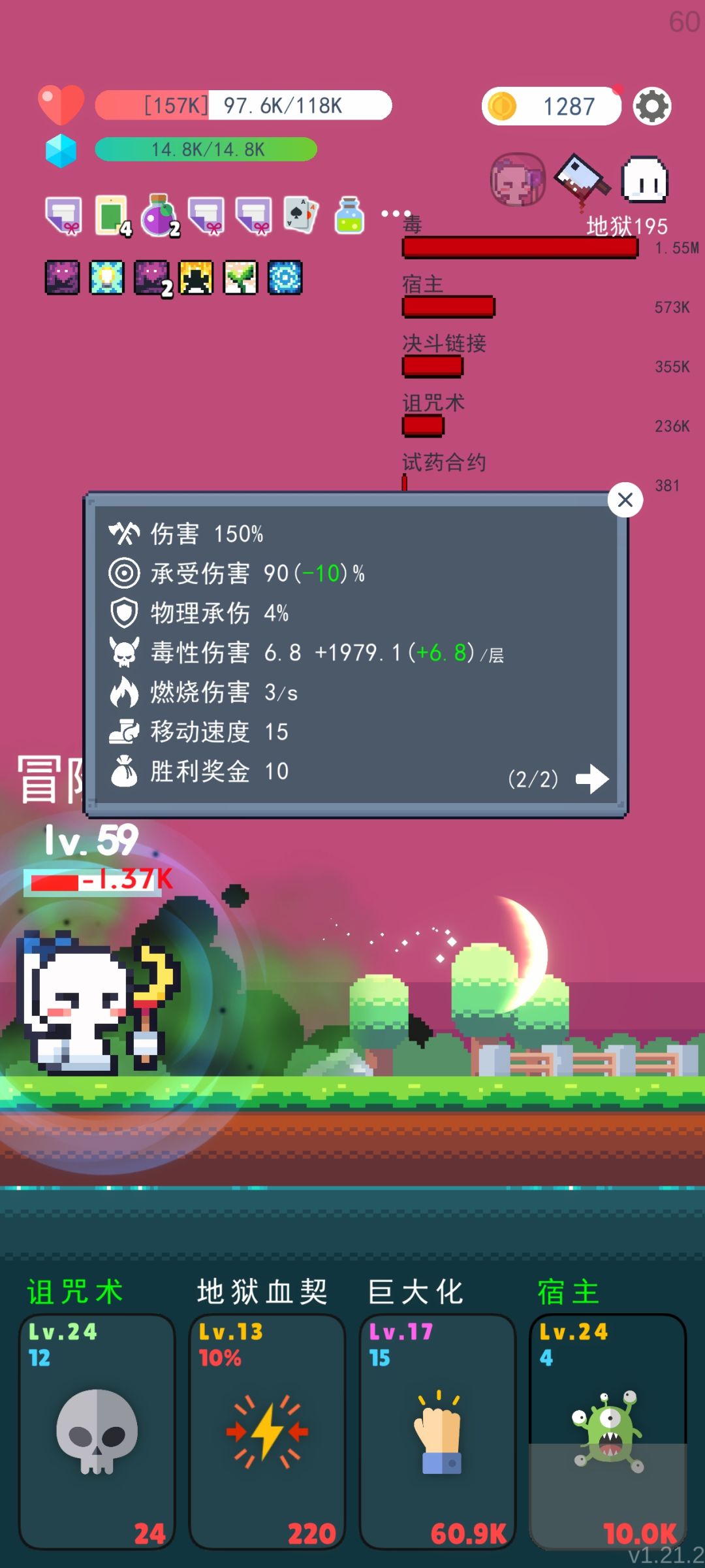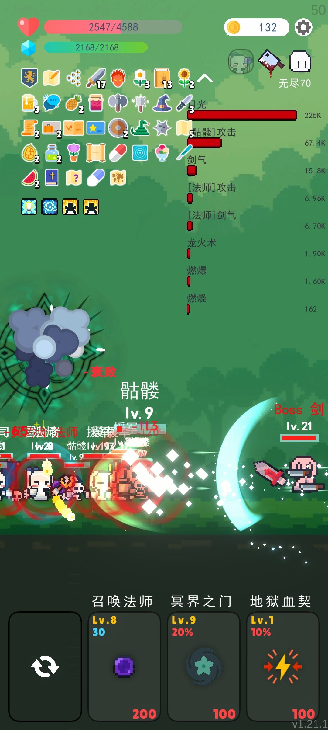 boss道具:无双剑刃、秘银锤、血钻,悬赏令、遗嘱,创作、玄秘魔杖。 技能:地狱血契、巨大化、剑刃强化,用逆流输出,圣光护体保命。技能顺序影响数值,地狱血契要放左边,巨大化放中间,剑刃强化放右边,注意魔法球释放技能可能会影响顺序,导致数值下降。技能只升级地狱血契。 转职随意。转大法师注意避免三个技能分开在两页,无法调整技能顺序;转大法师不要献祭技能,大法师献祭有bug,过一段时间回主界面重进,会只