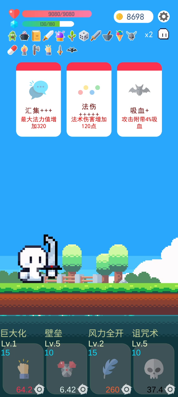 开局武器带海盗弯刀(叠攻击上限) 防具带海盗眼罩(眼罩反击可以触发弯刀叠攻击) 前期过度技能带圣光和壁垒 前期选东西一定选血量上限,这个流派基本不缺蓝 中期选战士转职(开局加百分之50攻击力) 中期遇到吸血可以弄到百分之10左右就行(完全够用) 中期过度技能带诅咒减攻加壁垒减伤(抗住就行) 3000块买第五个技能第一首选建议电力味糖 电力糖一级加百分之30暴击,升一级加15 3000块买了就是开局+百分之75暴击,中间随便选几个暴击就到百分百了 后期到第三次转职选暴击鬼剑 (暴击鬼剑每次暴击可以偷百分之20攻击力) 我们之前就把暴击叠满了,每次攻击都能偷攻击力 女神有个技能叫坚毅祝福 被打一次加百分之0.5攻击 到后期有几个技能是最优先的 巨人化加血量上限(暴击吸血鬼剑唯一缺点就是怕被秒)