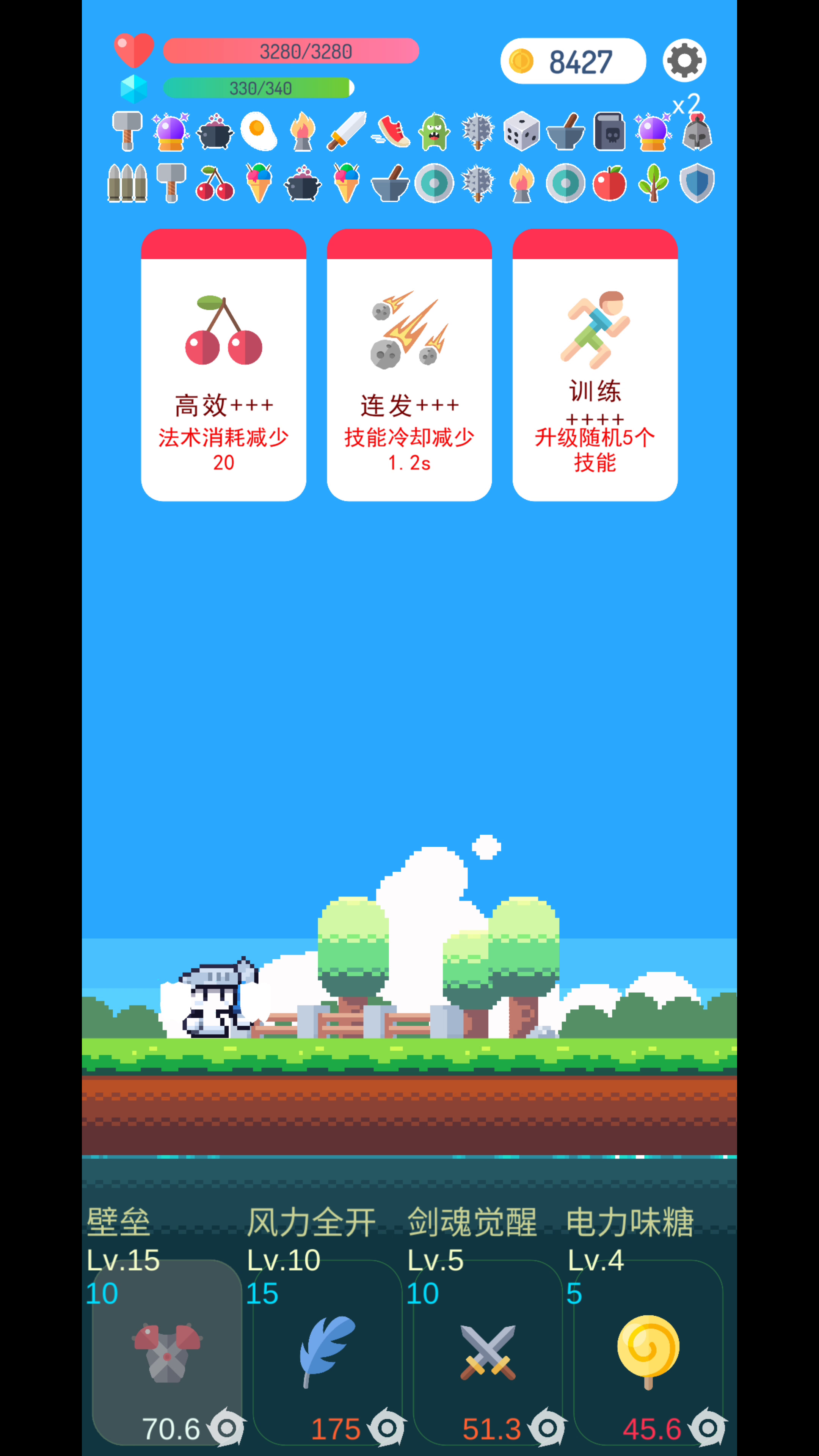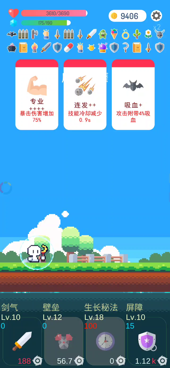 论如何享受平推的快感😏 平推的核心是“风力全开”和“壁垒”,一个增伤加速,一个减伤配合符文剑被动免击退,前期伤害不够可以先用剑魂觉醒补伤害,再带个治疗防暴毙,技能优先升级壁垒(伤害不低于20怎么免击退,怎么平推,刮痧那也是相互的😏)转职路线就走剑士,后期转防御,20%免伤他不香吗,在升级一下免伤,直接平推就完了 记得前期点一下法术消耗降低,篝火的时候就不用浪费次数回蓝,我一般是20打底的,生长秘法记得在开其他技能之前点,白蹭一波升级再说