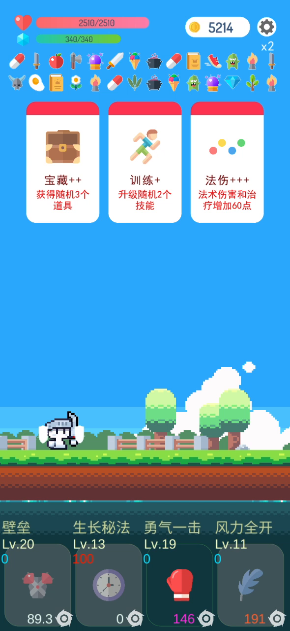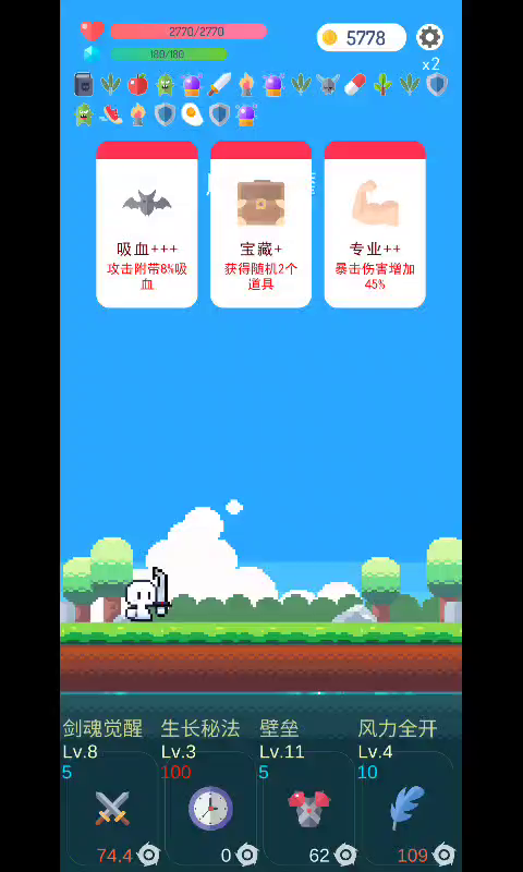 武器-初始刀-稳定吸血来源 副武-眼罩-反击回血 前期技能 衣服 回血 剑魂 拳套 开局有减蓝耗的话前面蓝量很稳定 后期技能 衣服 生长秘法 风力 棒棒糖 通关天赋选项 优先暴击> 吸血> 爆伤>攻击 有高级减蓝也可以拿一个,然后基本上可以无蓝耗过图