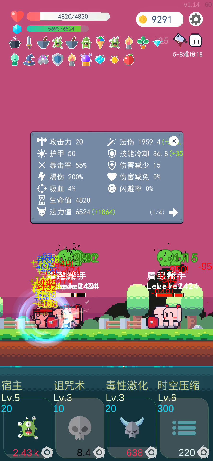 几乎平均15分钟通一难度。有时时间更少,胜率100% 1装备选择,蛇头帽(游戏里叫丛林帽), 月光杖(其它武器不方便回蓝) 2吞噬(首选魔法护盾,次选诅咒术)圣光优先拿 3职业选择,法师-第二个减cd法师 4关键技能:如视频的134位置。2号位如果吞噬了就留魔法盾(建议吃掉魔法护盾4级够用,6级大赚加9级圣光10秒内对面身上有80多层毒了。) 5,关于第4个技能超时空(优先于奇迹魔法。都是减cd) 时空有加法强 奇迹魔法伤害更高但是他加移速挺麻烦的而且要堆cd 6。开局选60法强。小技能优先圣光。次选毒素和暗言术。有魔法护盾要优先拿。 7,女神首先2%回蓝(因为吞噬了魔法护盾中前期要蓝保命防翻车),然后选减伤和法强。 暗言术后期直接换掉了。毒流不吃法强。 精英道具。爱拿啥都行。没有要求。 轻松法毒。伤害30万。。 下次出个战士毒流。但科技战士的cd对激素激化有bug。就是第一次施放后不吃cd加成。要等他自然cd第二次施放就开始吃cd了(要等20多秒,但他吃属性选的cd)。胜率也有95%偶尔会倒地。