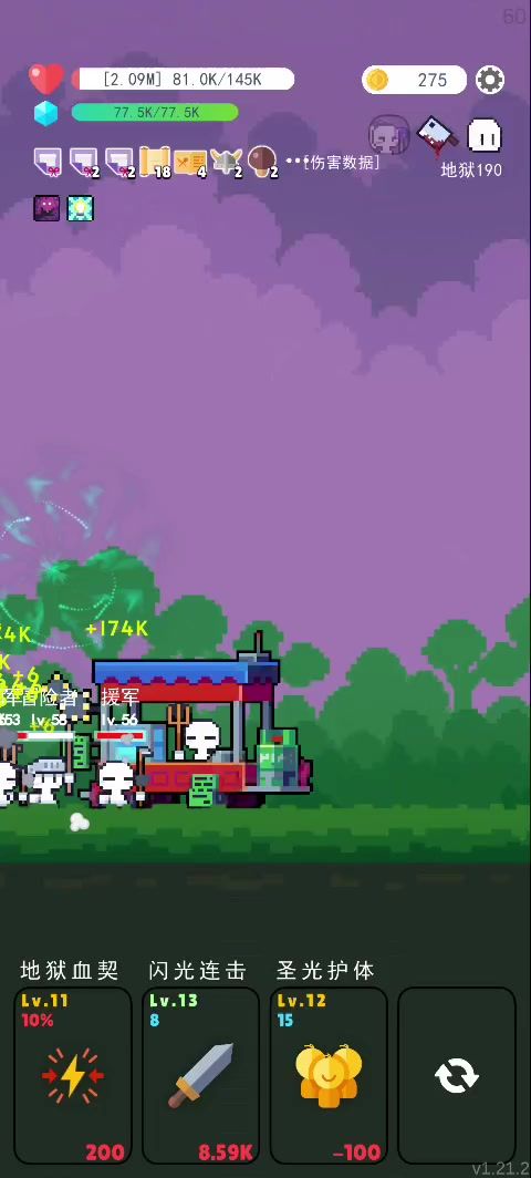 之前的攻略写到超视距击杀法。 但不够好,200层以上输出不够。 经过向大神们学习,改进了方法如下: 一:武器 月光:最核心武器,可以推一排,都没他好使 二:技能 5个主要技能: 巨大化(献祭掉):主要是为了让主角在视距之外,不易成为攻击目标 地狱血契:最核心技能,其他技能升到9之后,所有点数升级这个 剑刃强化 冥界之门:主要用途是挡枪,还有就是配合祝福回收叠护甲 圣光护体:主要防止有些boss的眩