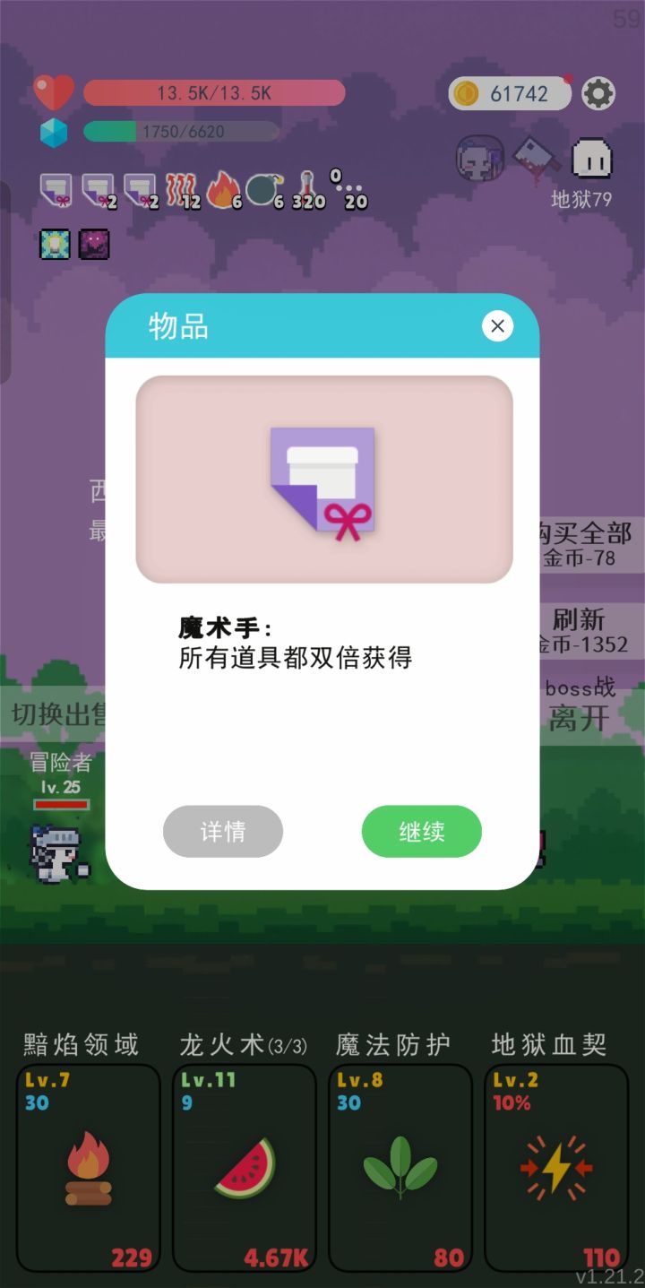 魔术手+5倍数值+重点通缉犯,学六个技能(可以双倍),但不知道为什么只能学八个,目前献祭逆流+电能灌注+无我+巨大化+静电冲击+地狱血契+雷霆领域+风力全开+圣光护体,不要拿任何随机技能道具(礼物、魔法球),本人已经被硬化害死无数次。不知道能打到几层