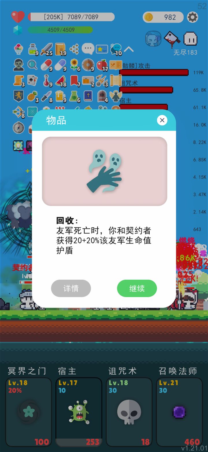 这两个加在一起再玩契约流,目前400层,护盾和血量分别能达到6T(万亿),不知道怎么死
