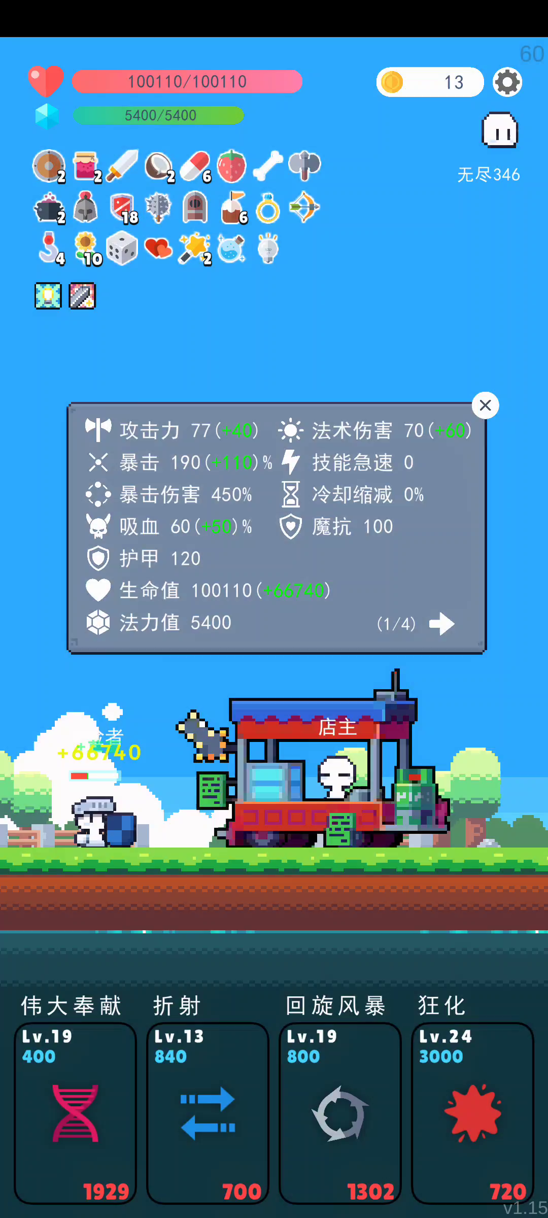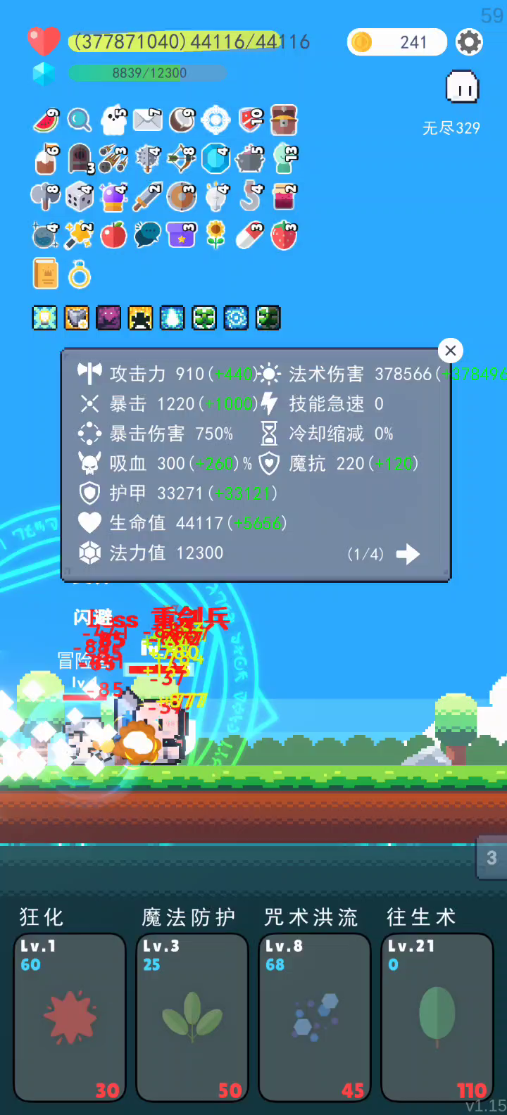 初始选大盾,稍微苟一下到中期拿到伟大奉献就无敌了!配合收藏家各种叠属性,战斗狂热可以继续翻倍攻击力防止给对面刮痧,拿一个突进技能或者可以把敌人拉回来的技能,以免打不到后排被无限击退耗死。 虽然还比不上排行榜上好几千关的大佬,但是这个成型了也很爽!